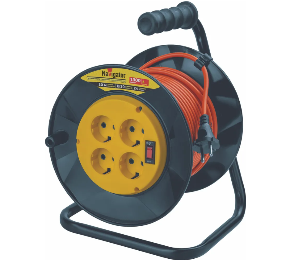 удлинитель на катушке NAVIGATOR 4 гнезда ПВС с/з с выкл IP20 3х075мм 6A 30м (93906)