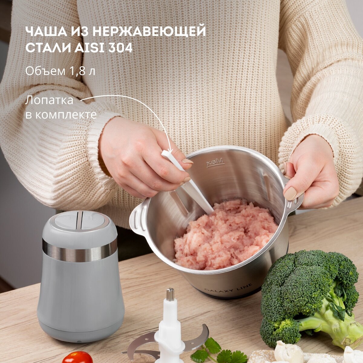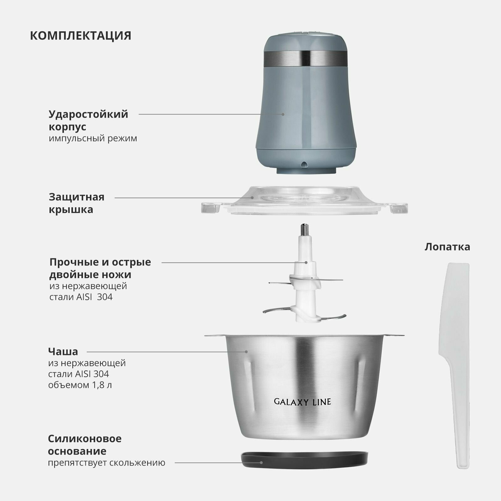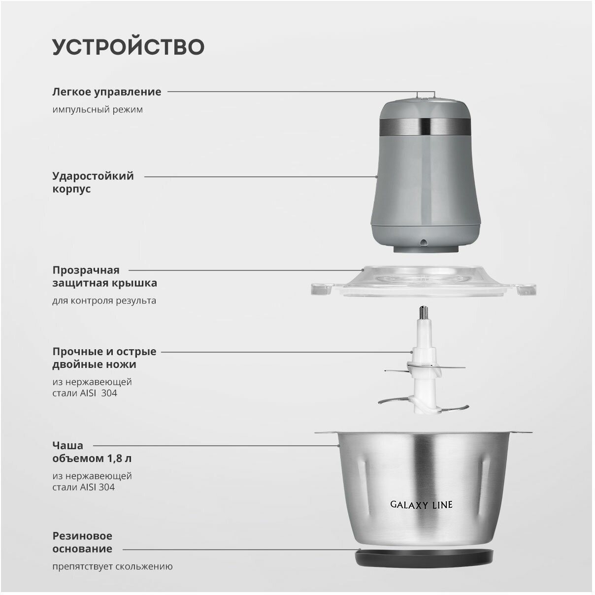 Измельчитель Galaxy серебристый Чоппер электрический LINE GL 2367 600 Вт