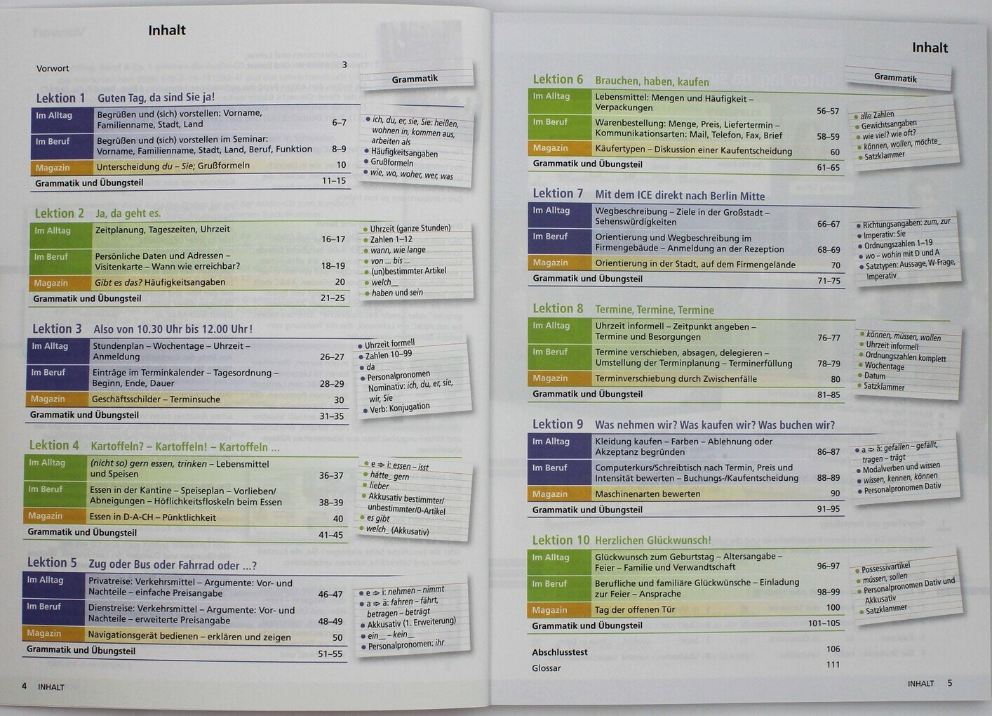 - einer Doppelseite "Im Beruf" zu dem jeweiligen Thema in einem berufssprachlichen Kontext
