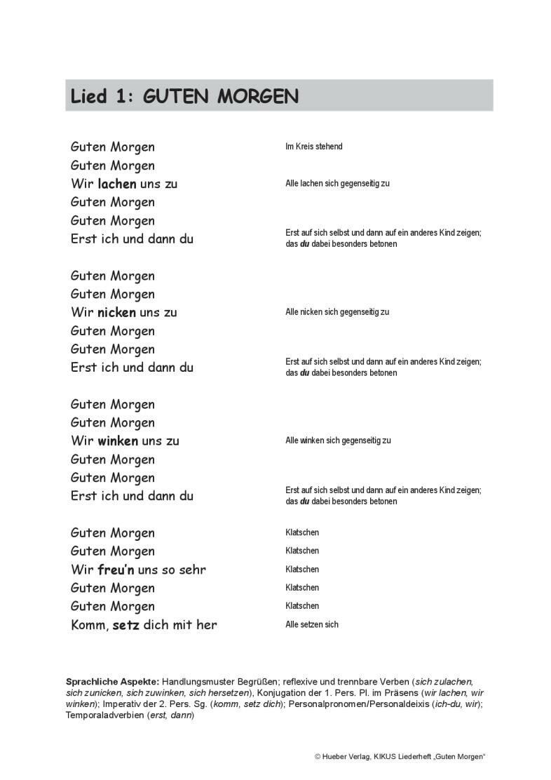 Liederheft „Guten Morgen“ (zur Ausgabe an die Kinder/Lerner)