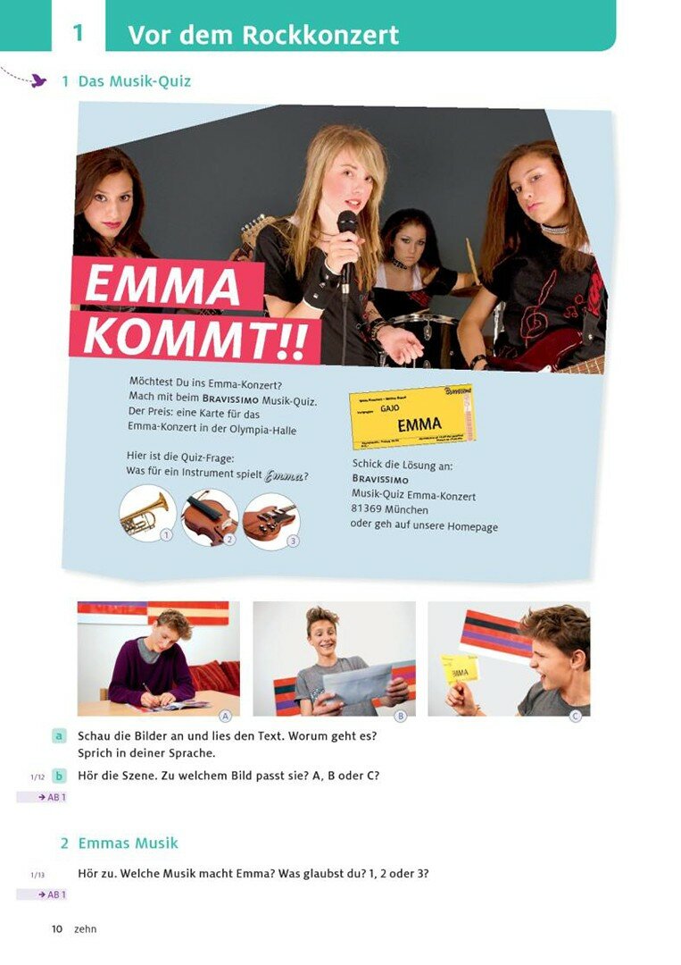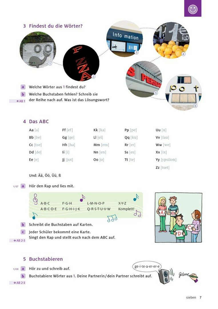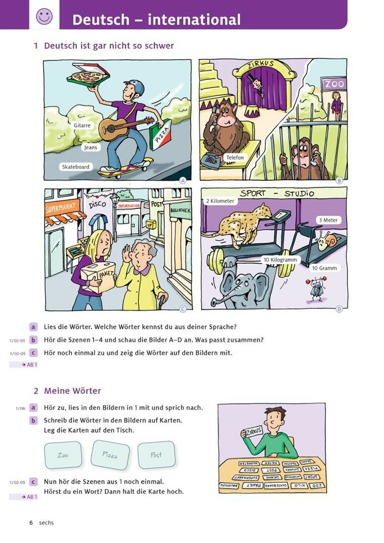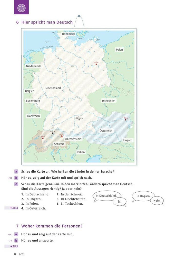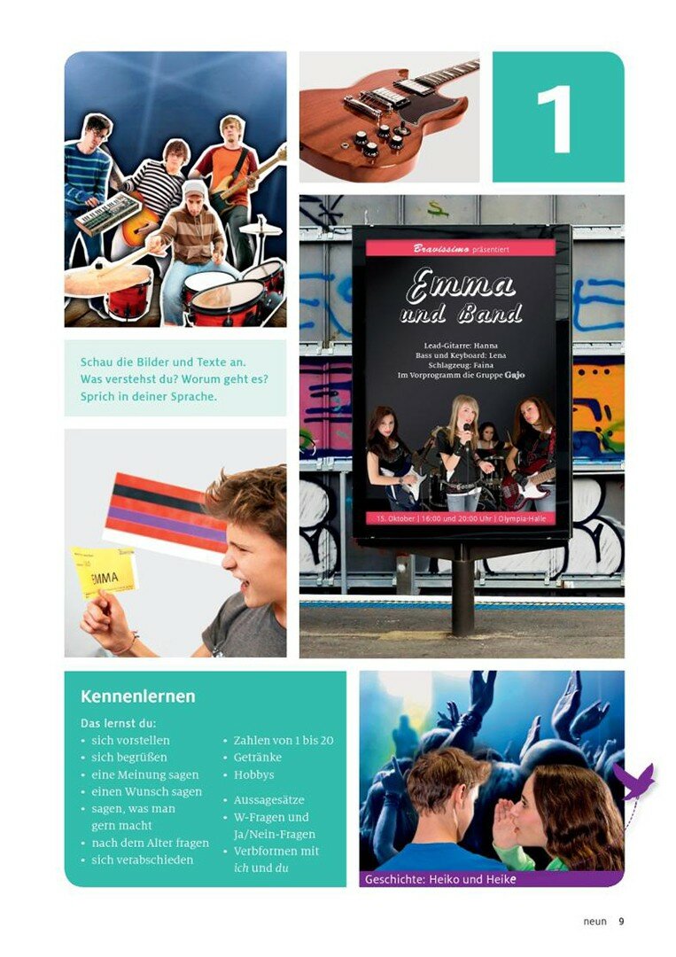 - Jede Lektion beginnt mit einer prominenten Aufgabe und verfugt uber eine Extra-Spalte, in der die geubten Kommunikations-, Wortschatz- und Grammatikinhalte systematisch und tabellarisch wieder aufgegriffen werden. Ausspracheubungen sind im Lektionsverlauf integriert.