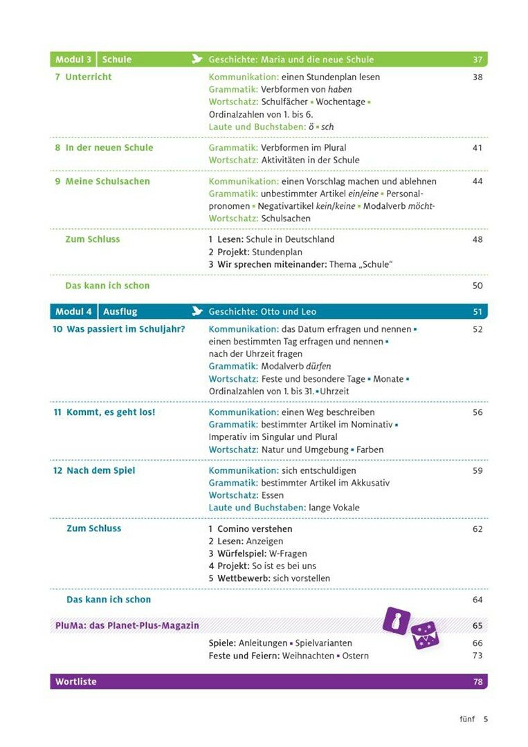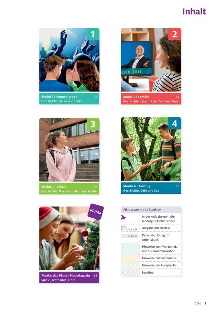 - Die Magazin-Seiten "PluMa" am Ende des Kursbuchs bieten lektionsbezogene Spiele und weitere Spielideen sowie landeskundliche Informationen zu Festen und Feiern