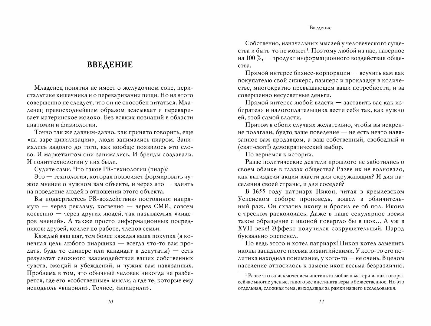 Каждый ваш шаг, тем более каждая ваша покупка (а конечная цель любого PRщика - всегда что-то вам продать, будь то сникерс или кандидат в депутаты) - есть результат сложного взаимодействия ваших собственных чувств, эмоций и убеждений и чужих, вам навязанных. Проблема в том, что обычный человек никогда не разберется, где его "собственные" мысли, а где те, которые ему исподволь "впарили". Точнее, "впиарили".