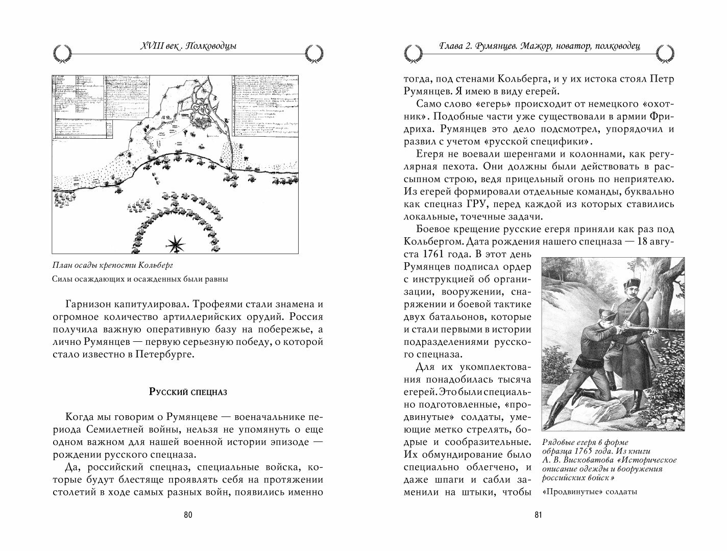 Именами Миниха, Румянцева, Потемкина, Суворова, Ушакова, Орлова ознаменованы самые славные страницы истории отечественных армии и флота. Кольберг и Кунерсдорф, Рымник и Измаил, Чесма и Корфу - эти названия золотыми буквами вписаны в историю военного искусства.