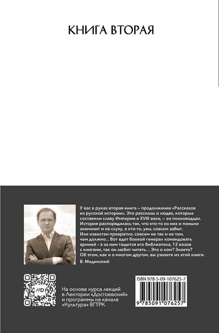 На сегодняшний день товар «Книга: Рассказы из русской истории. XVIII век. Полководцы (Владимир Ростиславович Мединский); М., 2025» можно купить с кешбеком в 1 магазине: book24