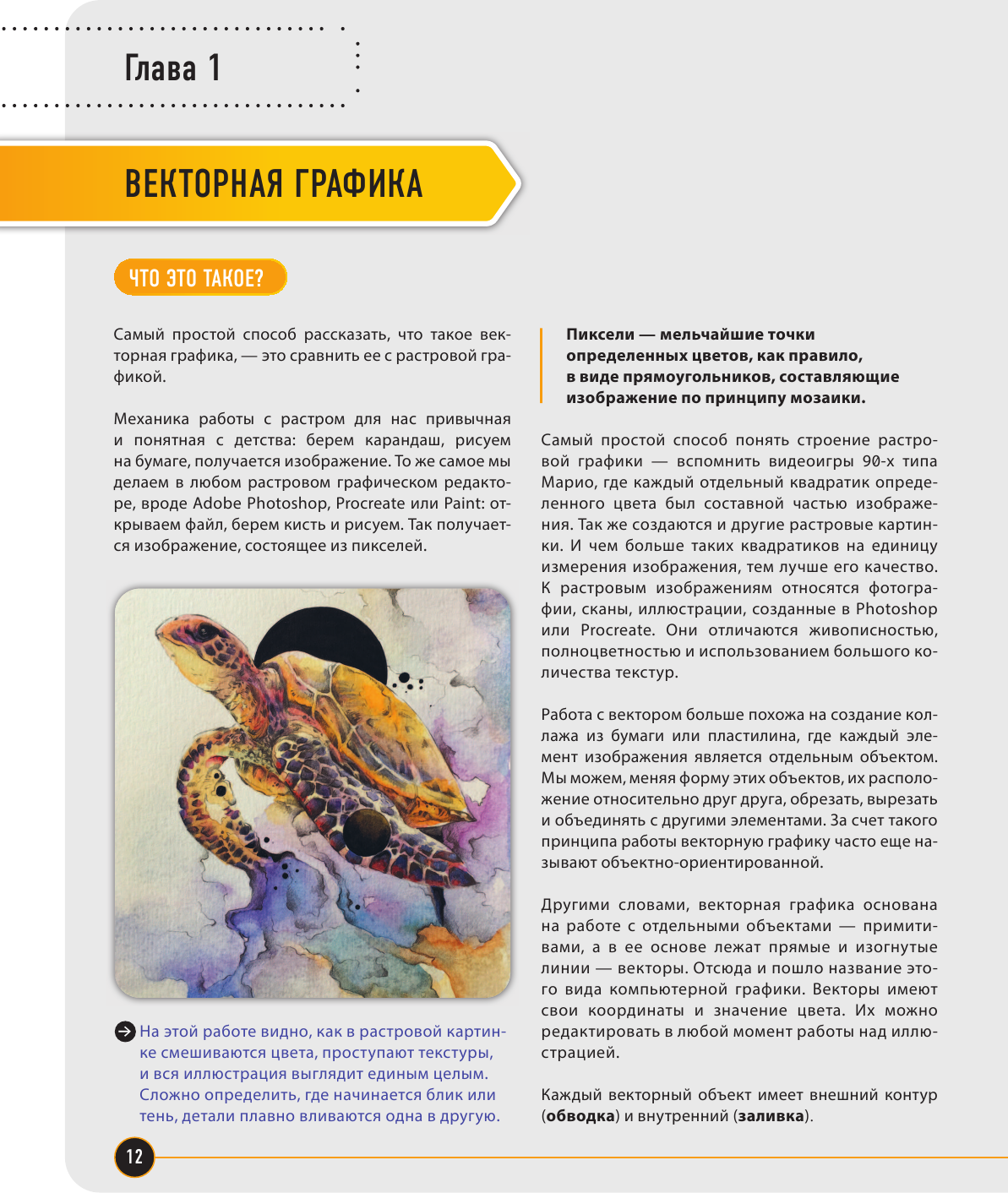 Что такое вектор и растр, какая между ними разница, как устроена векторная иллюстрация и почему создавать диджитал-рисунки не страшно и очень просто? В этой книге вы найдете ответы на эти и многие другие волнующие начинающих художников вопросы.