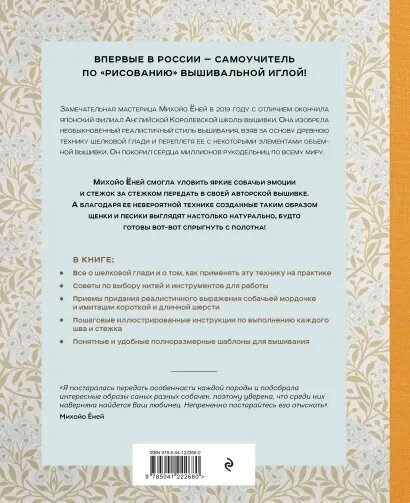 Портретная вышивка. Самоучитель по «рисованию» собак вышивальной иглой (бежевая) (Ёней Михойо); ООО "Издательство "Эксмо", 2023