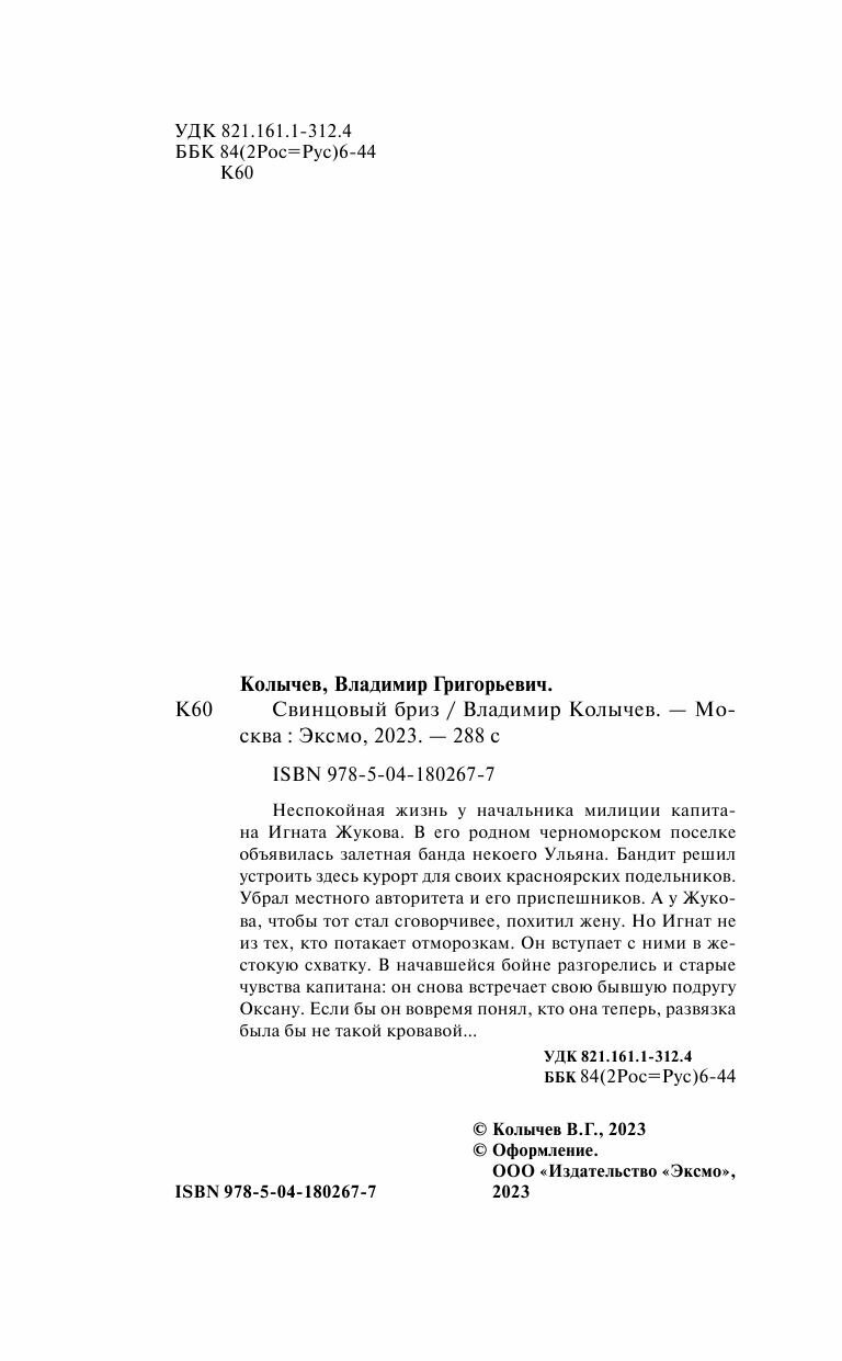 Книга: Свинцовый бриз (Колычев Владимир Григорьевич); ООО "Издательство "Эксмо", 2023