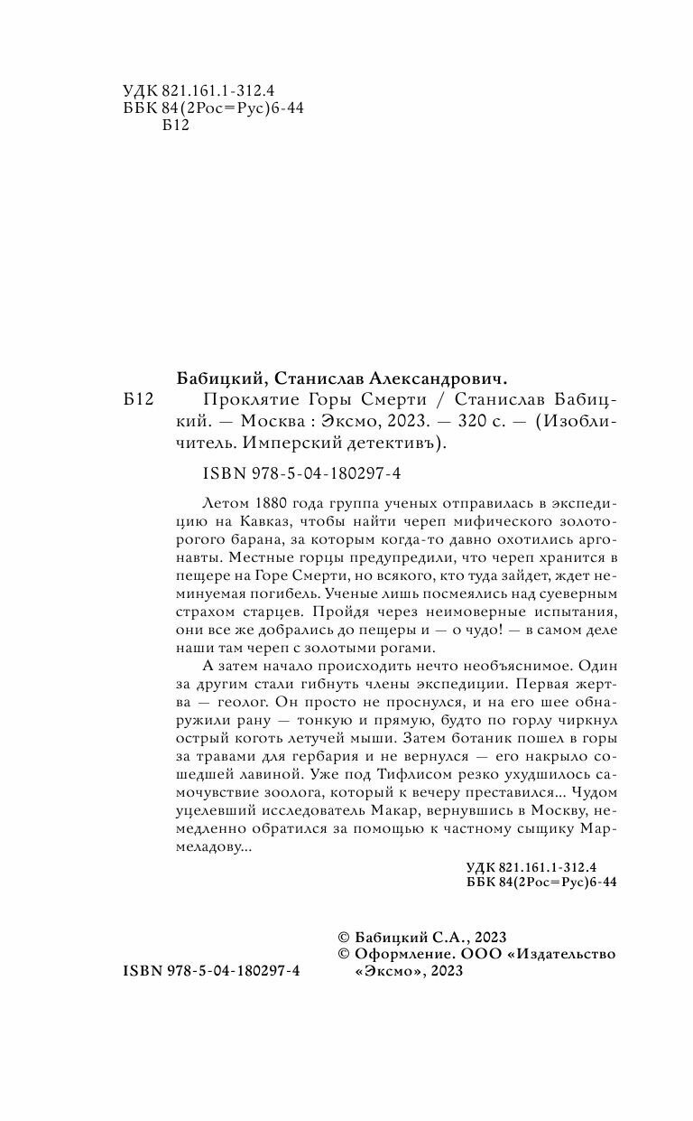 Книга: Проклятие Горы Смерти (Бабицкий Станислав Александрович); ООО "Издательство "Эксмо", 2023