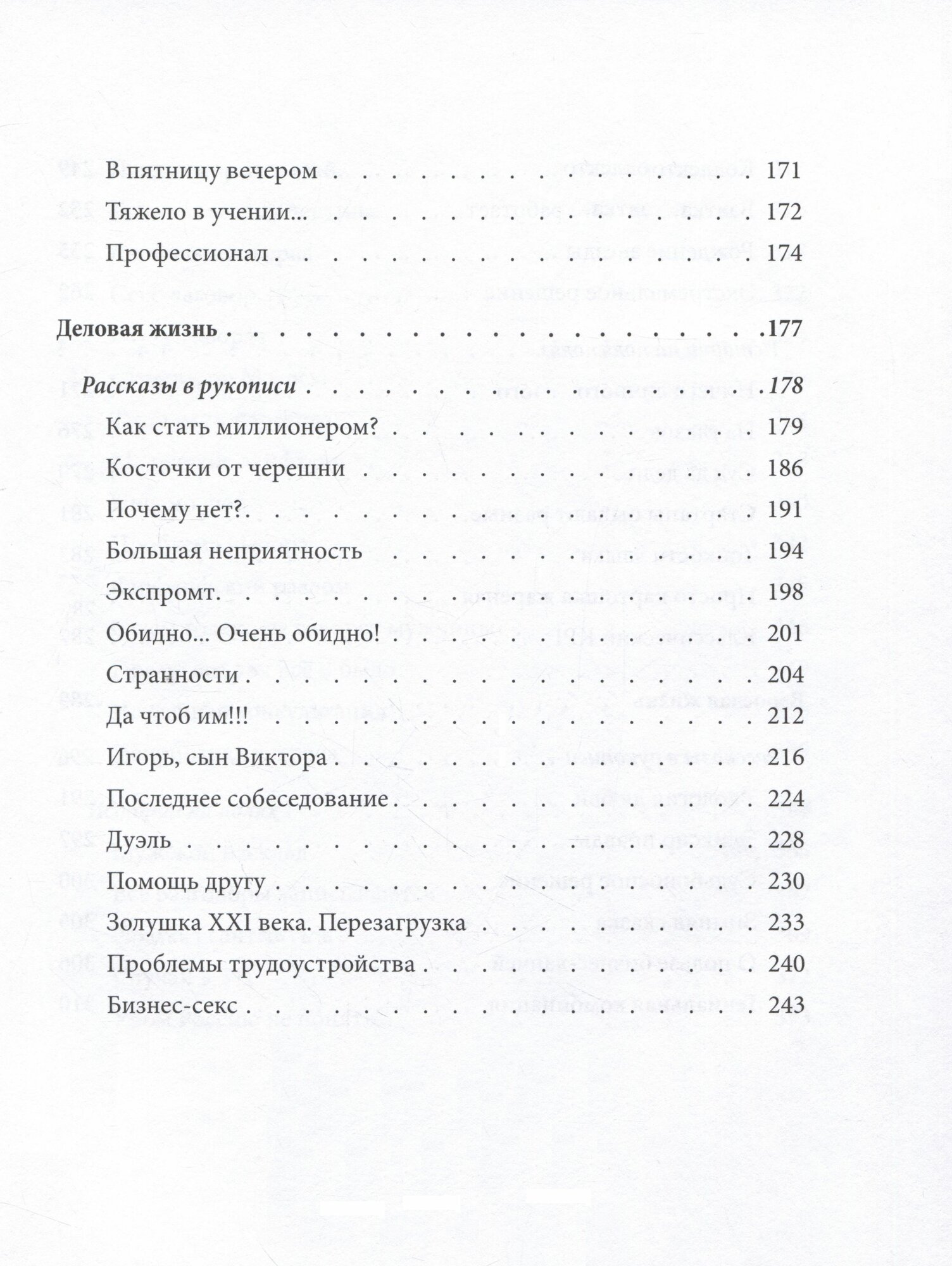 Очень хочется с кем-то поделиться. Я нашёл абсолютно необычную книгу. Что-то невероятное. Кажется, просто рассказы, но это не просто рассказы. Каждый из них открывает для вас целый мир. Вроде бы наш мир, но мы его таким не видим, а автор видит. И что странно, главы про любовь и про бизнес одинаково прекрасны. Цена не маленькая, но она стоит тех впечатлений, которые вы получите. Причем книга не одноразовая, вы к ней будете возвращаться снова и снова, Повышает настроение однозначно.