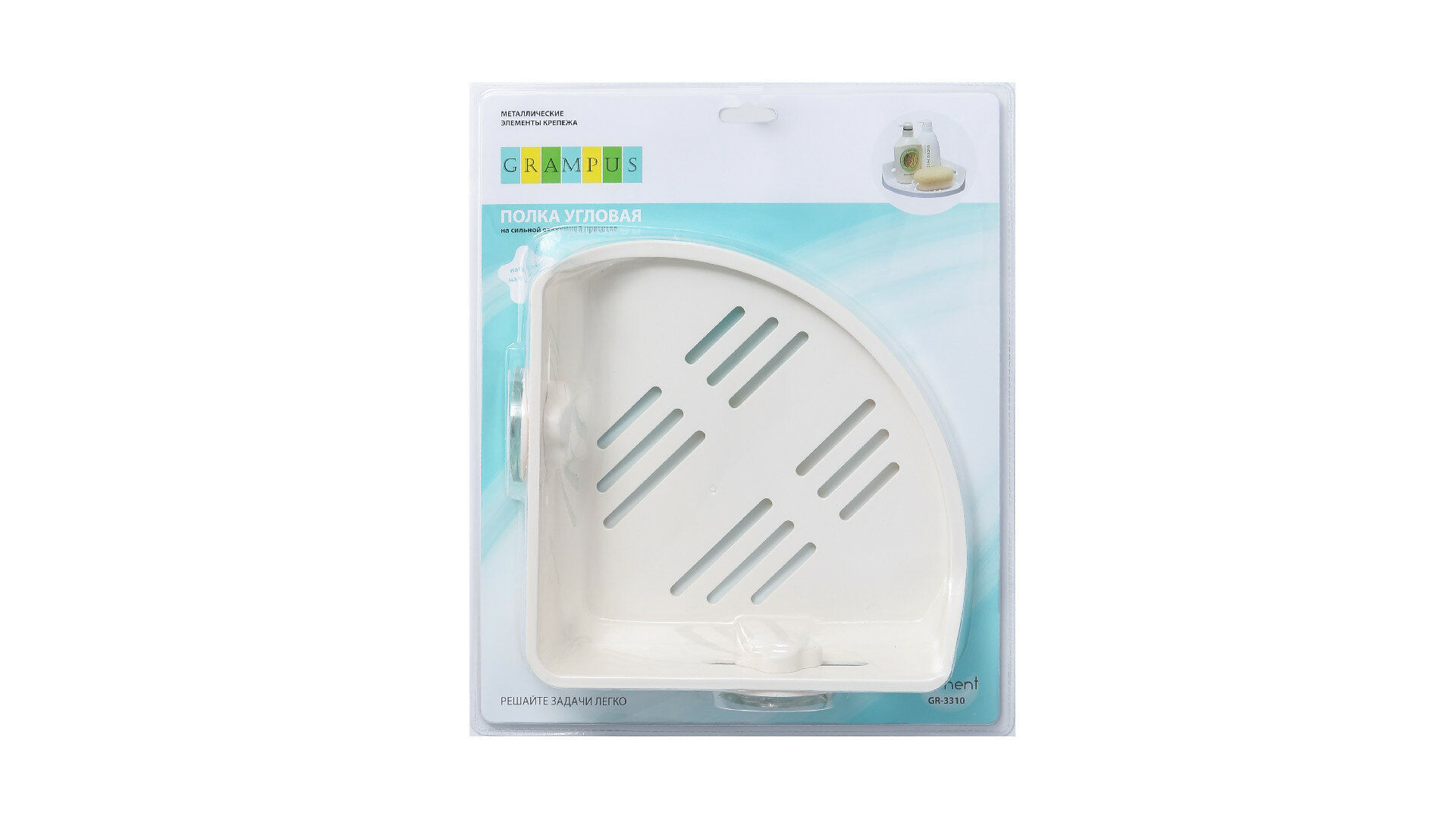 Угловая полка "Grampus" с одним ярусом прекрасно впишется в интерьер любой ванной. Выполнена из пластика. Крепится на присоски. Не занимает много места. Корпус из пластика – устойчивого к перепадам температур, повышенной влажности и бытовым химическим средствам материала. Легкий уход – за аксессуаром легко ухаживать, достаточно использовать мыльный раствор или протереть обыкновенной мягкой тряпкой. Быстрая установки –благодаря вакуумной присоске вы легко установите аксессуар на удобной для вас высоте одним движением руки.