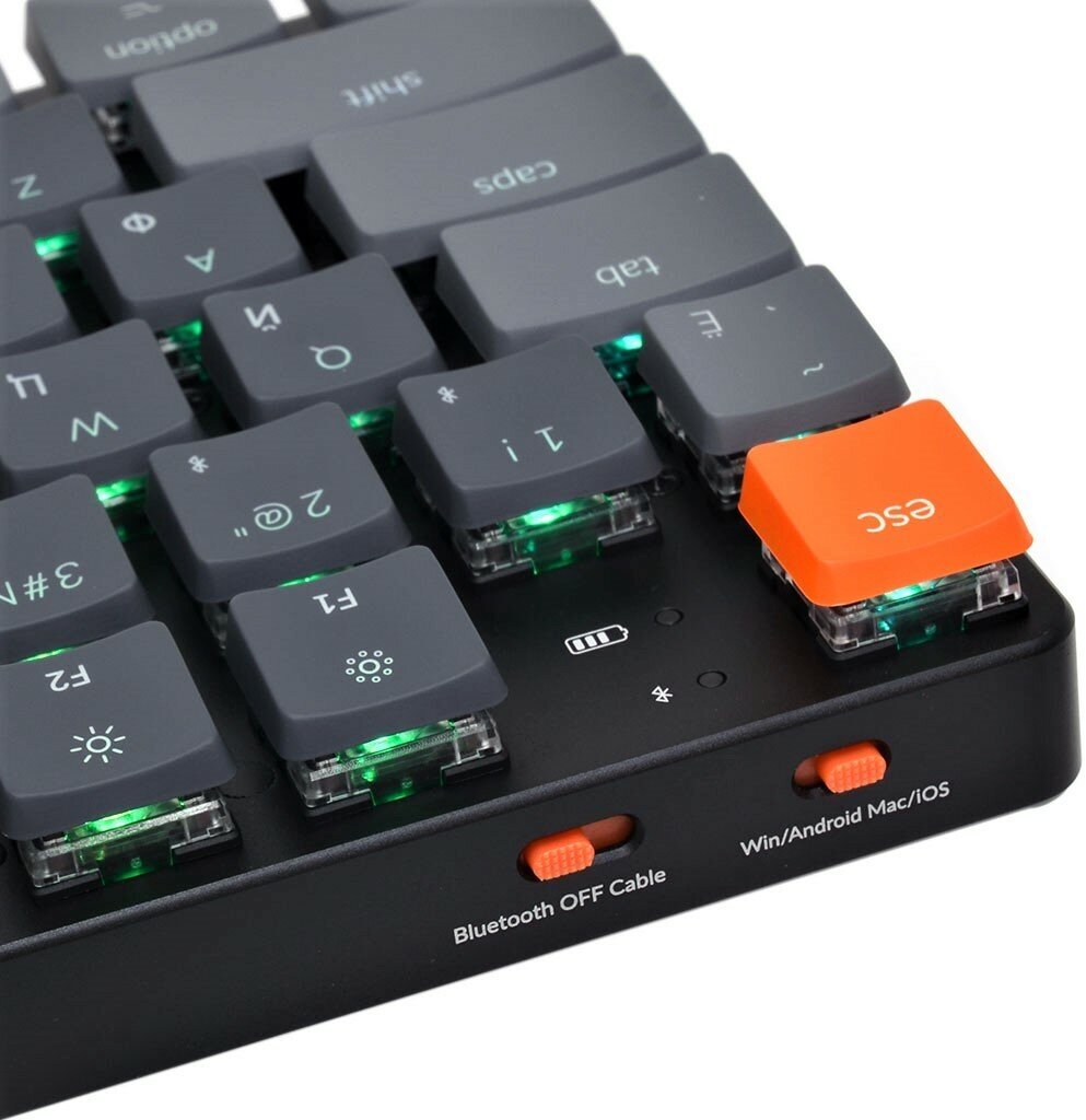 Команда энтузиастов из Keychron сделали прорыв в мире низкопрофильных клавиатур: Hot-Swap, низкопрофильные оптические переключатели, RGB подсветка, тонкий алюминиевый корпус — союз комфорта и функциональности. Оптические низкопрофильные переключатели делают клавиатуру компактнее, имеют небольшую длину хода, срабатывают быстрее и тише механических. Идеальны для любителей молниеносных срабатываний. Имеет 18 режимов: от статичного однотонного до разноцветных переливов. Световые эффекты меняются через клавишу “подсветка”, через FN + стрелка вправо можно настроить цветовой режим. Fn+F5/F6 регулирует яркость. Из-за северного расположения диодов русские символы просвечивают хуже английских. Специальные сокеты позволяют заменить переключатели на другие совместимые без паяльника. Для этой клавиатуры подойдут только Keychron Optical Low Profile.