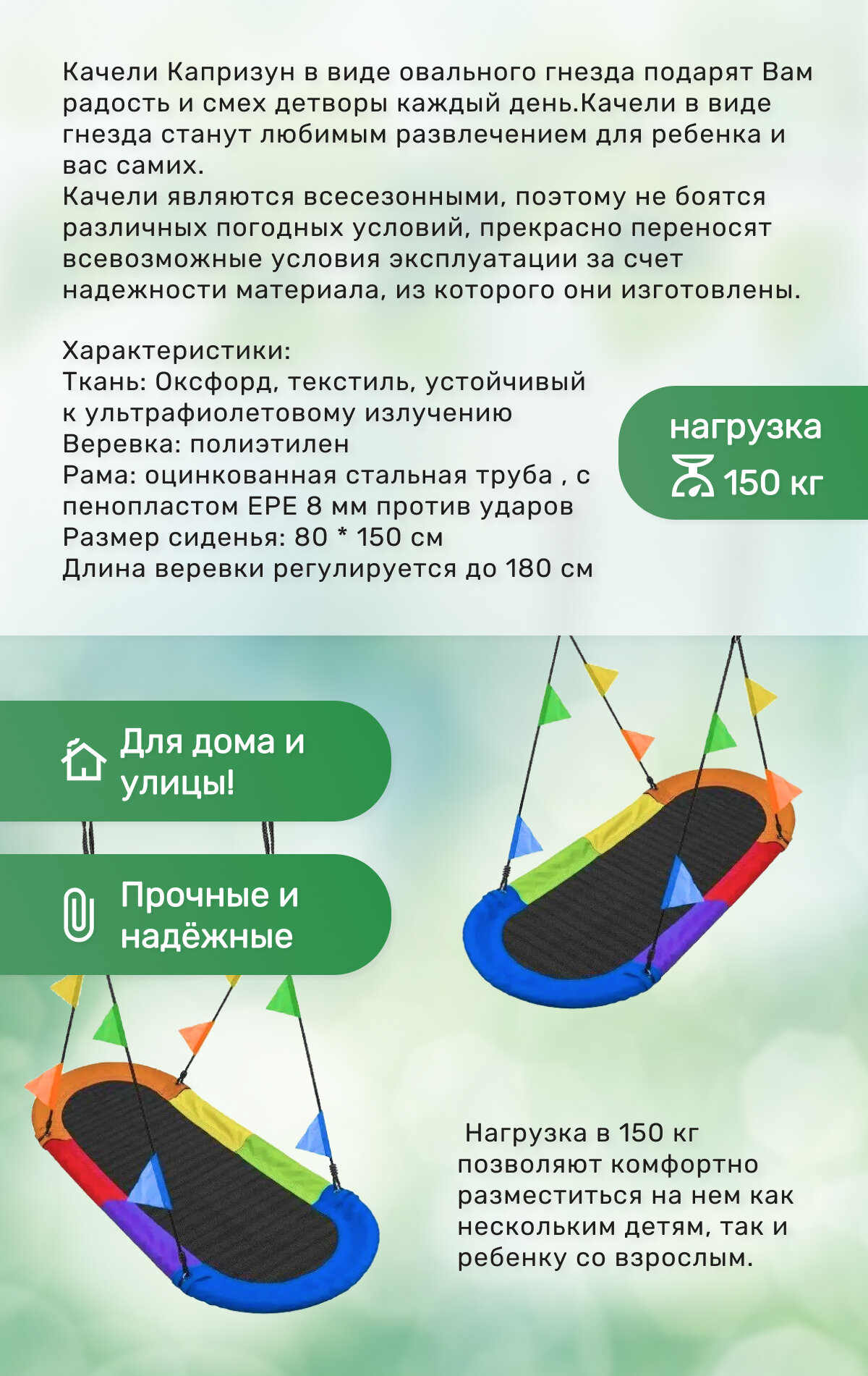 | Материал качелей | ткань |