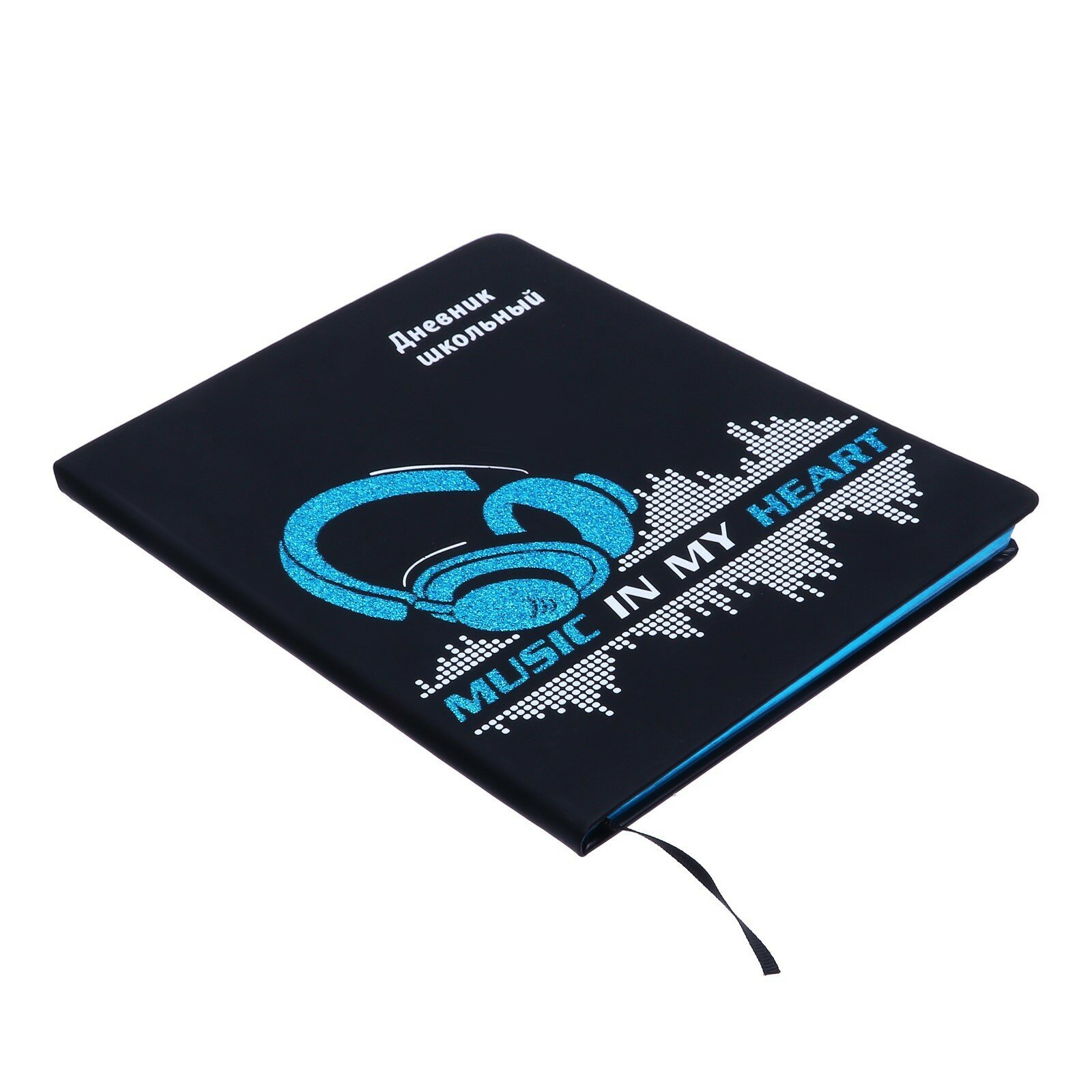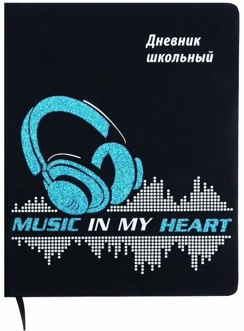 Дневник школьный, Музыка навсегда формат А5+, 48 л., твёрдый переплёт. Обложка: искусственная кожа "Софт-тач", глиттер, шелкография в одну краску, углы обложки закруглённые, углы блока закруглённые, отделка среза: окрашивание пантоном, одно ляссе, красочность форзаца: печать в одну краску, красочность блока: печать в одну краску. Блок: бумага - белый офсет, 80 г/м?, универсальная шпаргалка. Индивидуальная упаковка: ПЭТ-пакет.