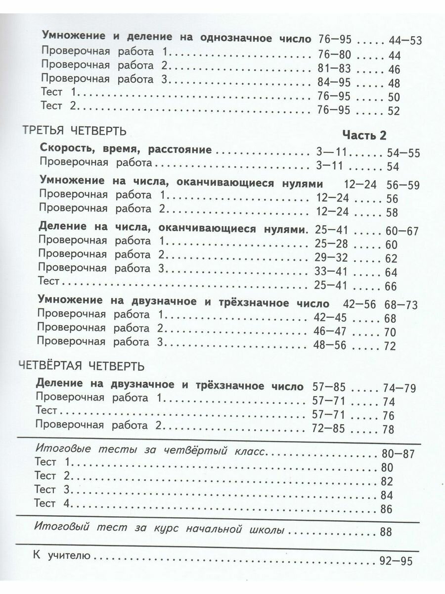 Проверочные работы составлены по отдельным, наиболее важным вопросам каждой темы четвёртого года обучения, тесты обеспечивают итоговую проверку по изученной теме.