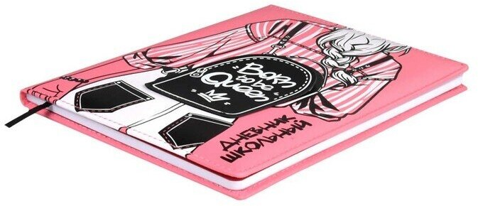 Дневник школьный, Девушка, формат А5+, 48 л., твёрдый переплёт с поролоном. Обложка: искусственная кожа "Плонже", аппликация из искусственной кожи, шелкография в две краски, обстрочка по периметру, углы обложки закруглённые, углы блока закруглённые, одно ляссе, красочность форзаца: печать пантоном, красочность блока: печать в одну краску. Блок: бумага - белый офсет, 80 г/м?, универсальная шпаргалка. Индивидуальная упаковка: ПЭТ-пакет.