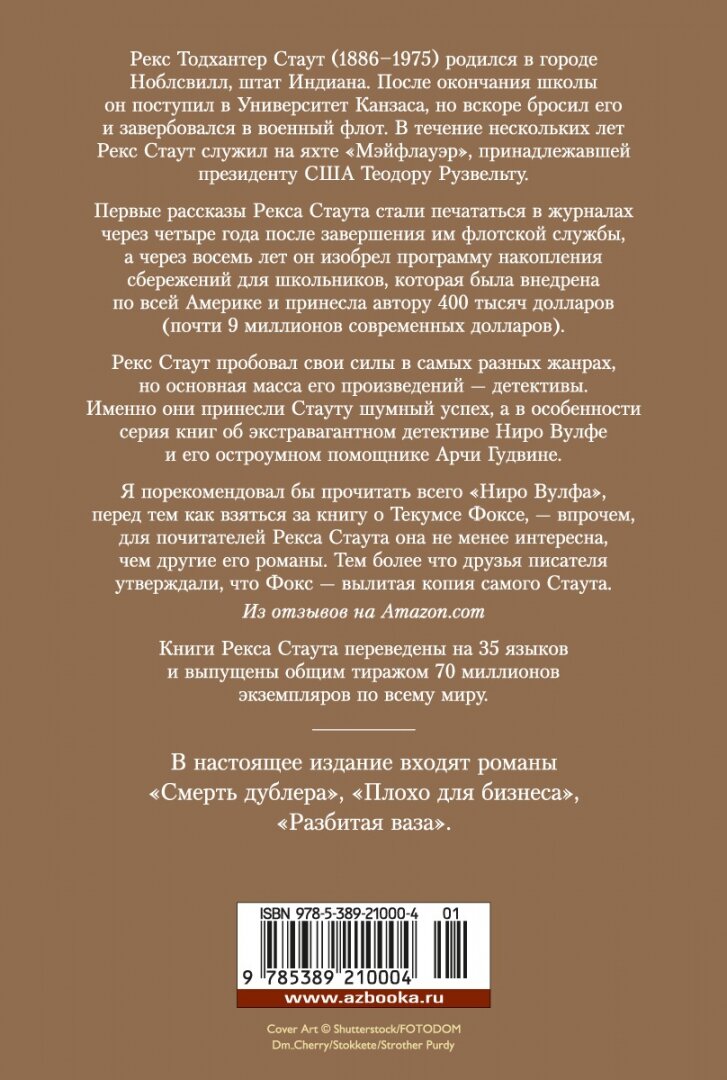 \"Азбуке\" надо бы убрать с обложки книги надпись \"Все расследования Ниро Вульфа\",а то не все поймут...Автор тот же,а вот главный герой-совсем не тот,кого ждут поклонники тучного любителя орхидей...Три романа написаны Стаутом в 1939,40 и 41 годах,и написаны они немного в иной стилистике,гораздо более легковесной.Стиль автора узнается,сюжеты увлекательные,но чего-то все-таки не хватает,хотя читать все равно было интересно...