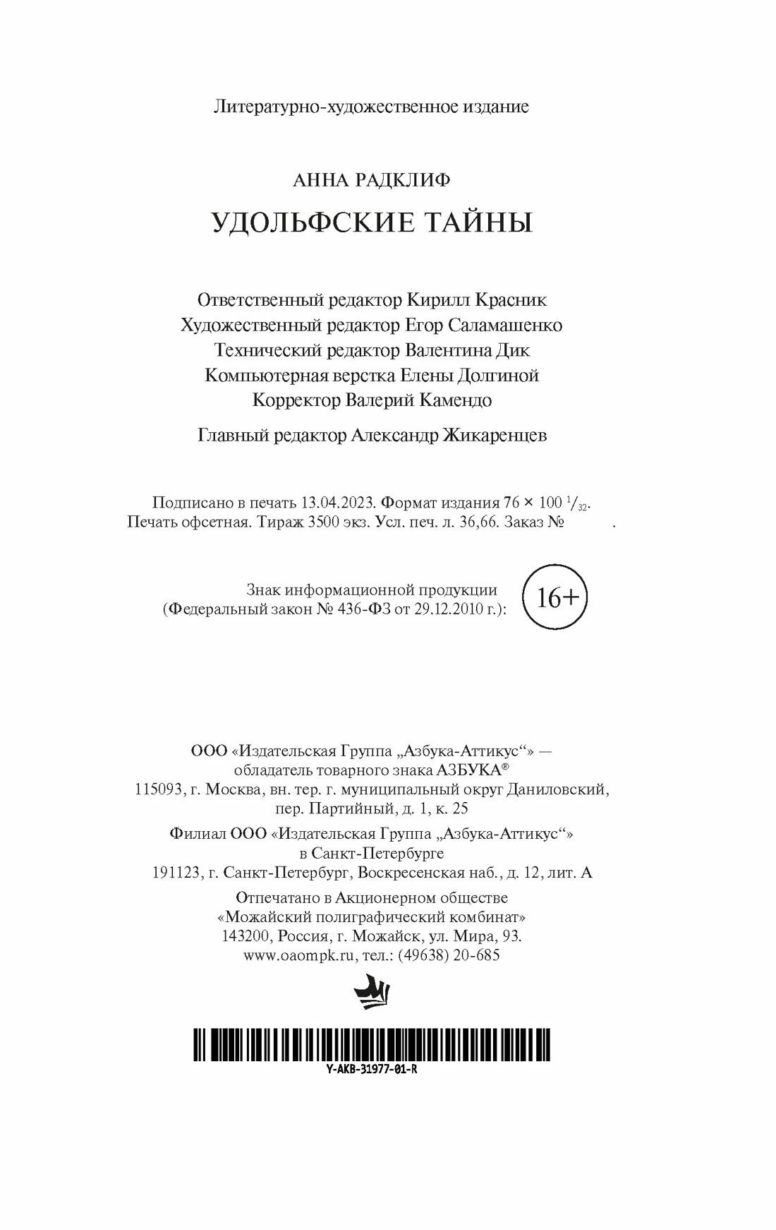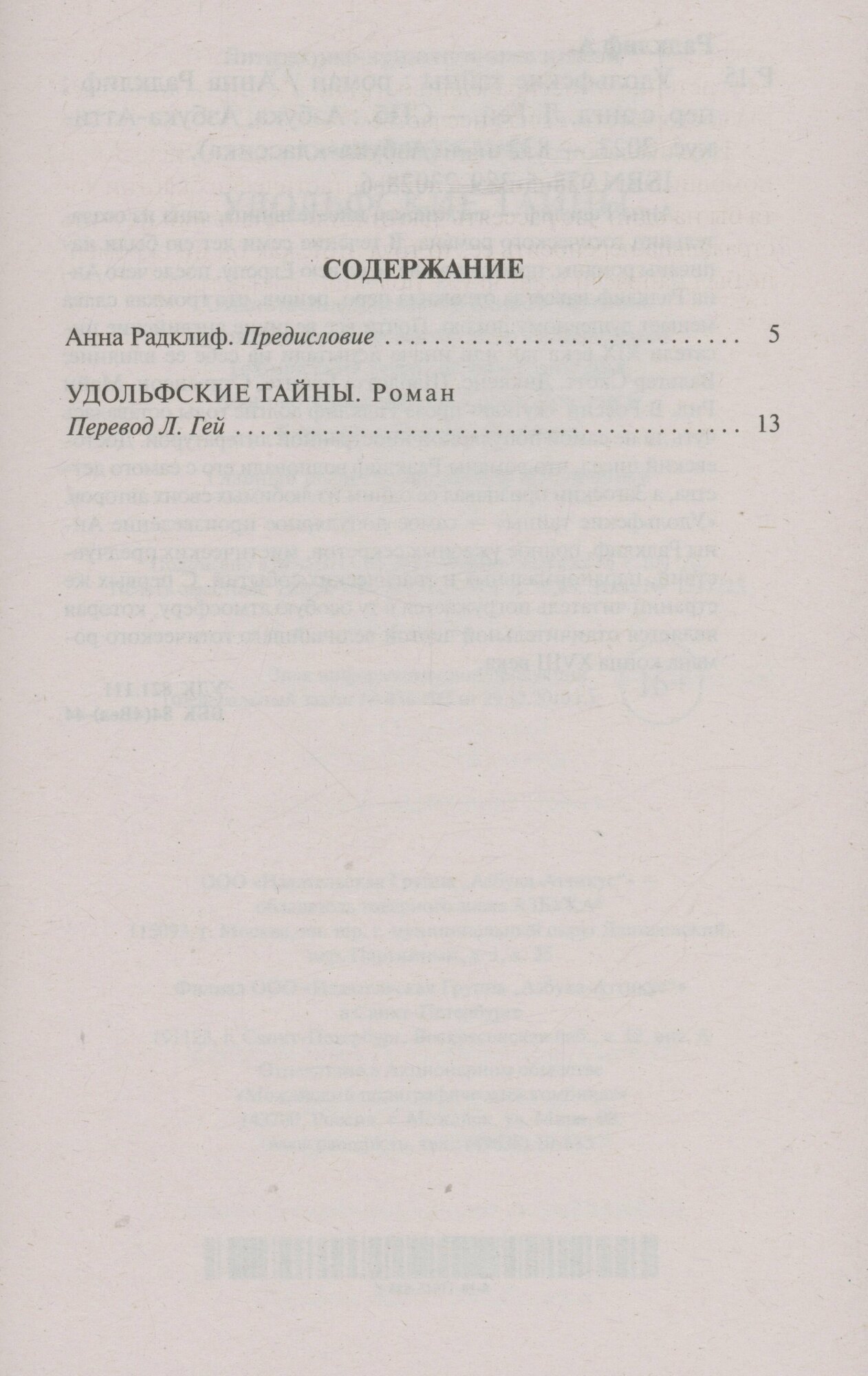 Книга: Удольфские тайны (Анна Радклиф); Азбука, 2023