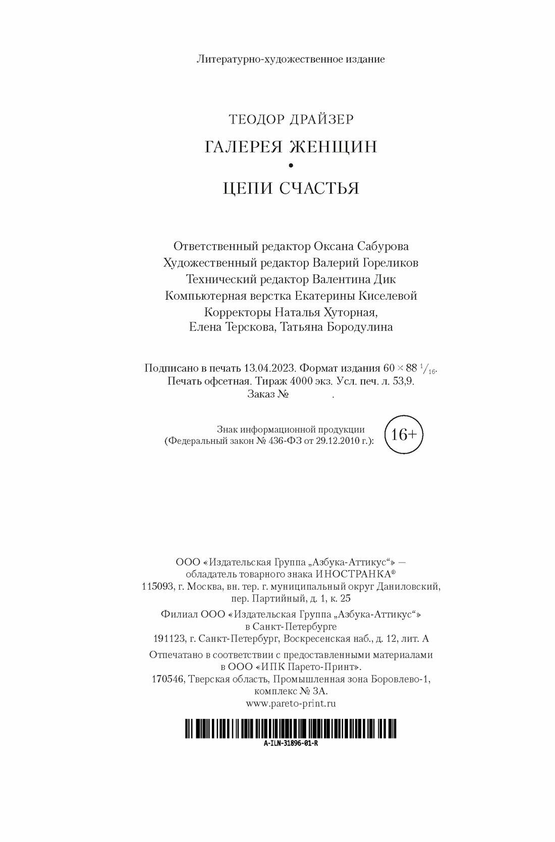 Галерея женщин. Цепи счастья (Теодор Драйзер); Иностранка, 2023