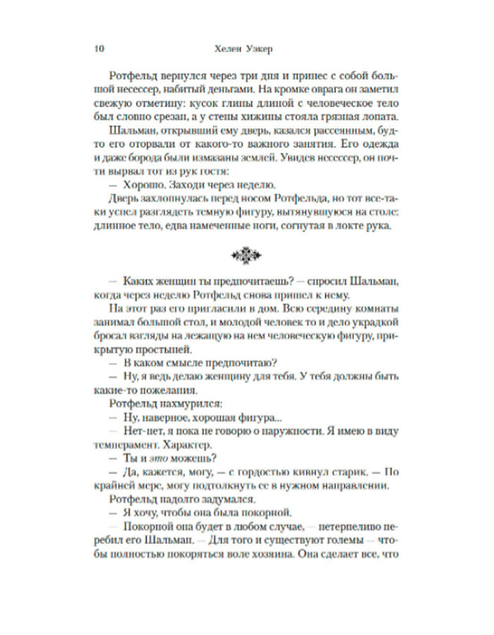 Очень красивая сказка о казалось бы невозможной встрече двух совершенно разных мифических существ, Голема - созданной из глины женщины, и огненного духа пустыни - Джинна. История очень яркая и атмосферная. Каждый герой книги, будь то главные герои или же второстепенные, очень ярко и хорошо прописаны. Каждый в этой книге по настоящему \"человечен\", со своими слабостями, недостатками и со своими талантами. Любовная линия очень плавно вплетается в кружево истории. Автор настолько потрясающе описала город Нью Йорк, пески пустыни, и море, что ощущаются даже запахи, звуки разговоров и шум ночного города.