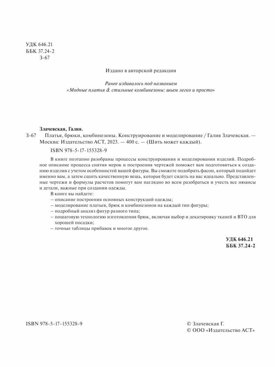 Платья брюки комбинезоны. Конструирование и моделирование (Галия Злачевская); Издательство АСТ, 2023