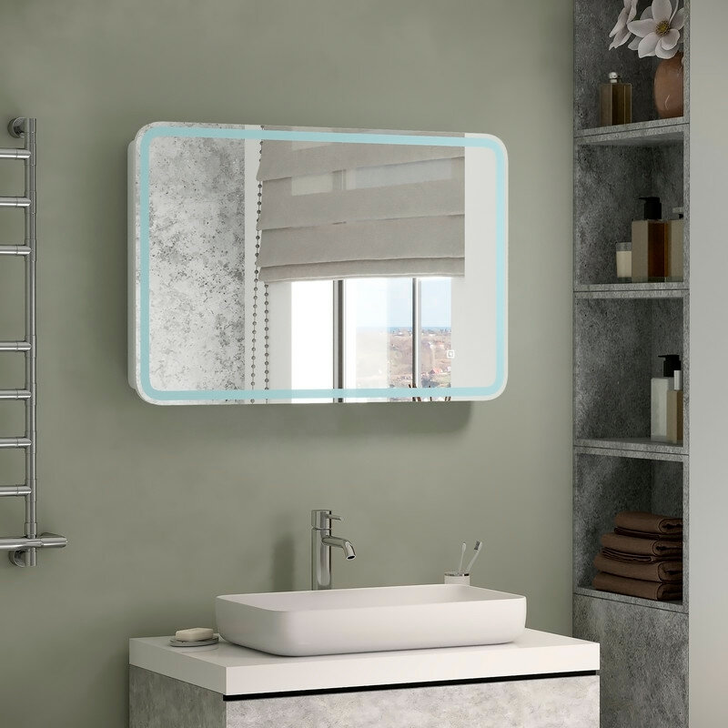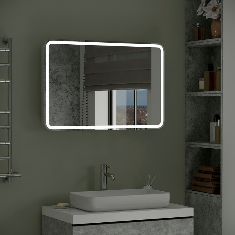 Зеркальный шкаф Континент Tokio Led 90 МВК010 с подсветкой Белый