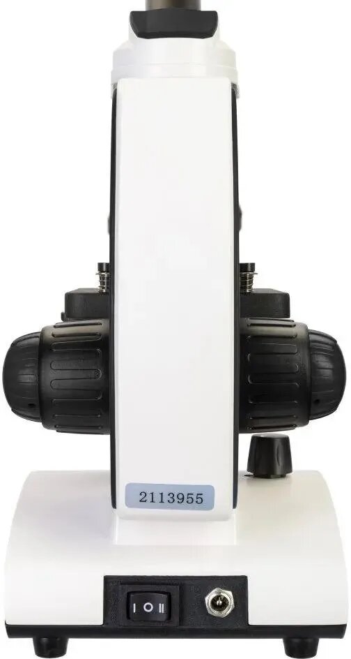 В микроскопе установлены монокулярная насадка и револьверное устройство на три объектива. В комплекте следующие аксессуары: 10-кратный широкопольный окуляр и три объектива-ахромата с увеличениями 4х, 10х и 40х. У 40-кратного объектива есть пружинящая оправа, которая защищает переднюю линзу от повреждений. Насадку можно вращать на 360°, также она имеет небольшой наклон в 30°. Эти моменты упрощают и делают более удобной длительную работу с микроскопом, особенно в группе. Все элементы оптической системы сделаны из стекла, что позволяет добиться высокой четкости передаваемой картинки. Также в этом помогает коаксиальный механизм грубой и точной фокусировки.