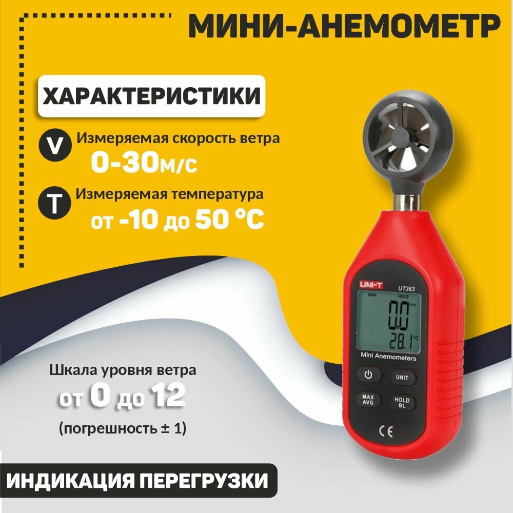 Анемометр UNI-T 0 ~ 45м/с -10С~ 50С UT363