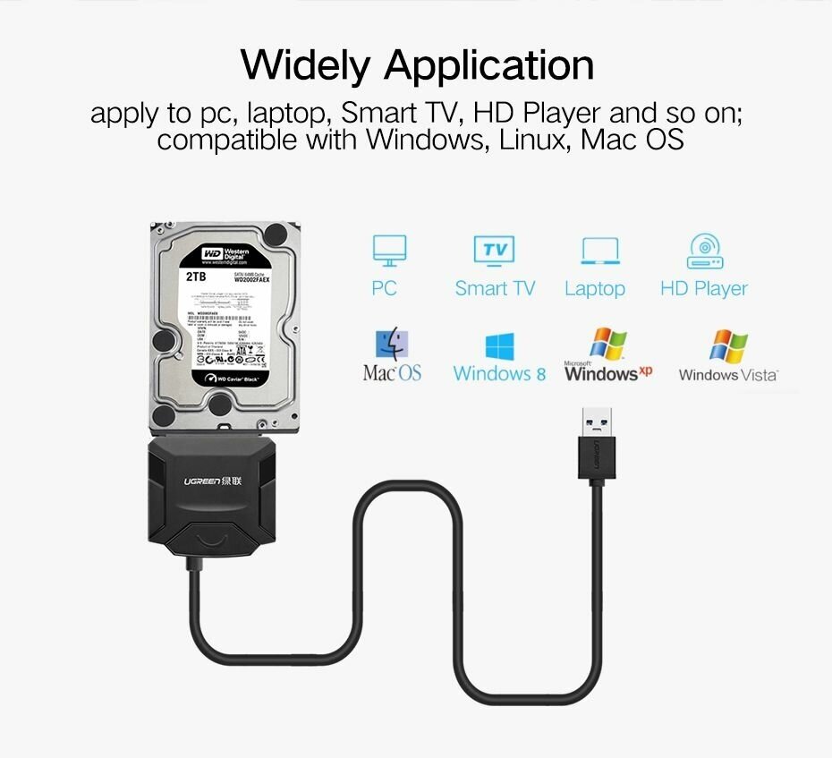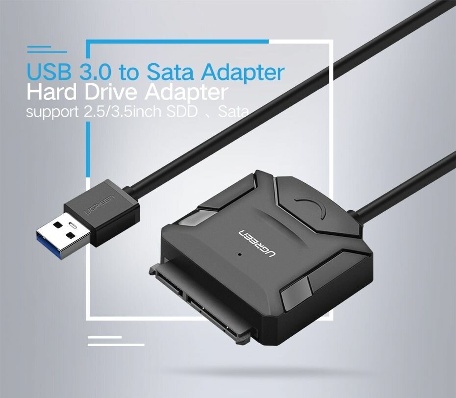 Адаптер Ugreen будет крайне полезен вам, если вы не только владеете 2.5-дюймовым SATA-накопителем (роль которого могут играть как HDD, так и SSD), но и испытываете необходимость быстрого и не требующего каких-либо серьезных манипуляций подключения накопителя к стационарным и мобильным компьютерам.