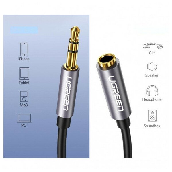 Кабель акустический UGREEN 40673_ 3.5mm Male/3.5mm Female 1м black AV118