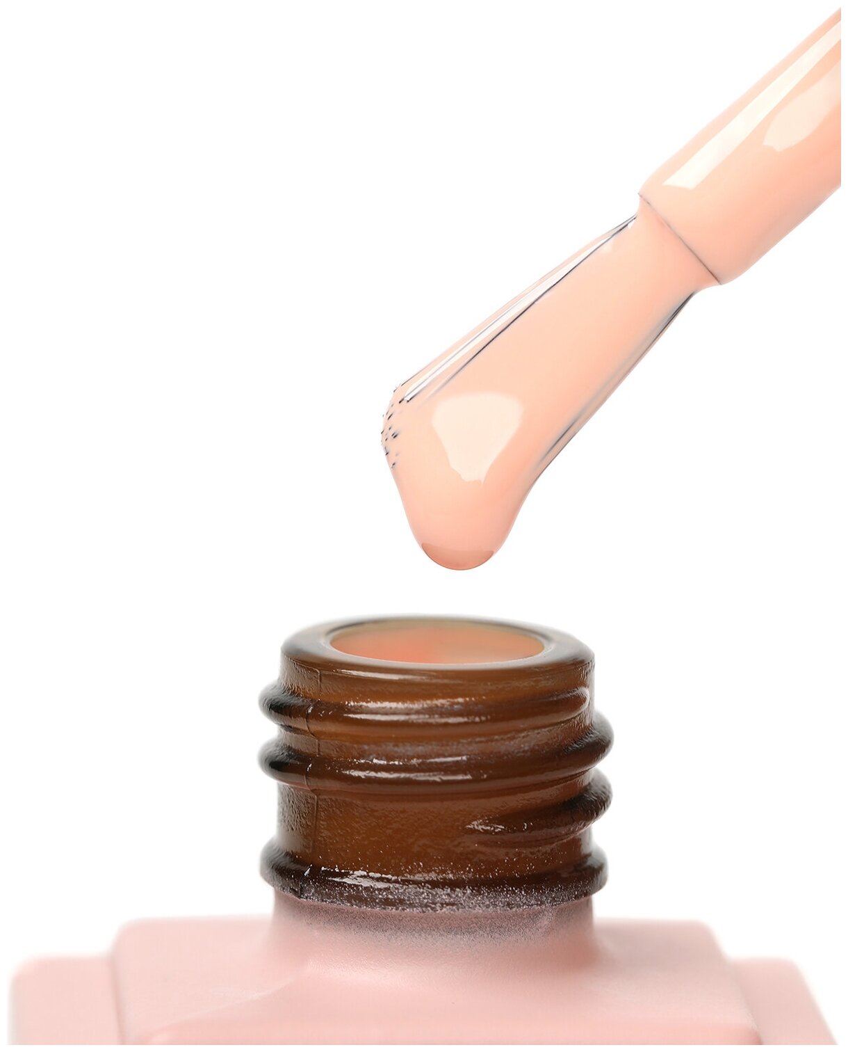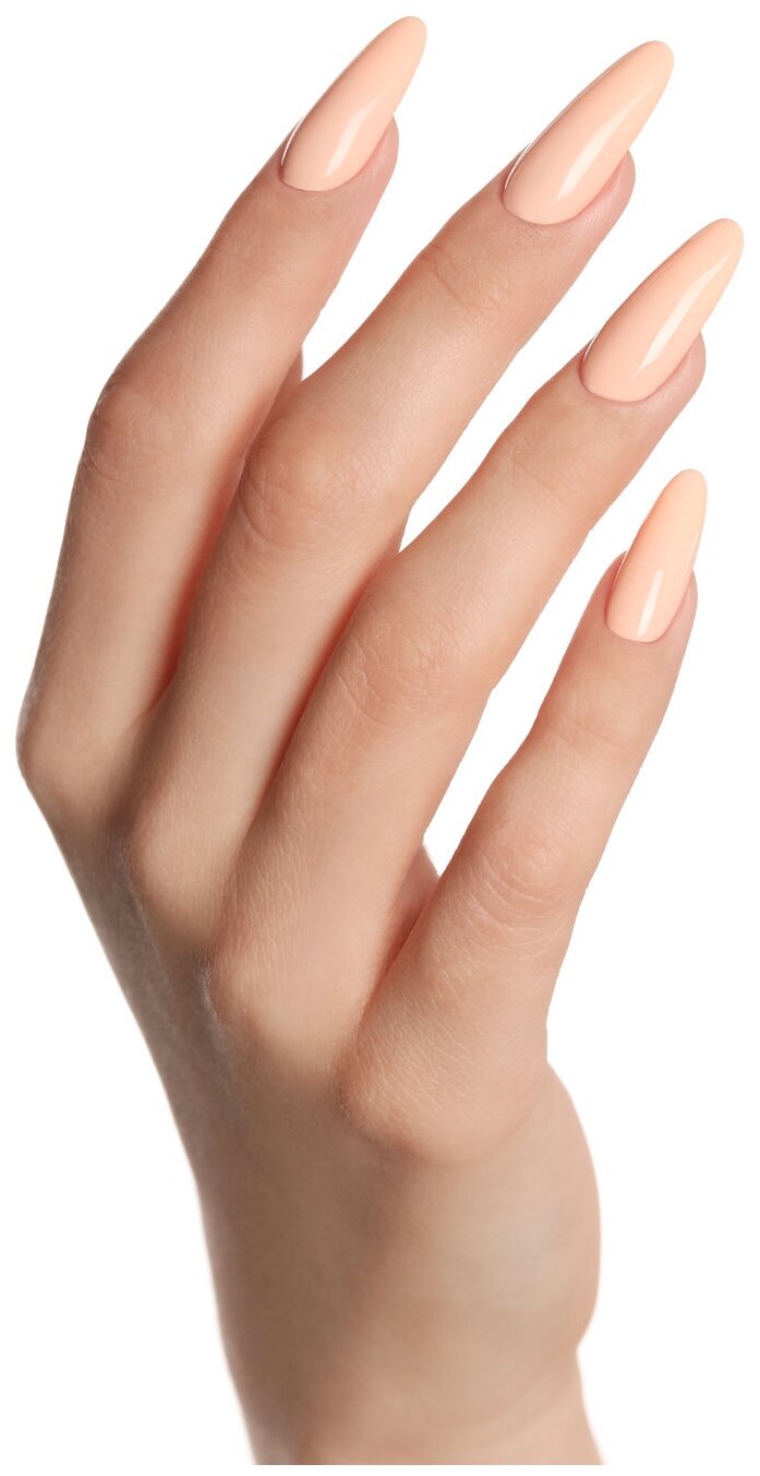 Благодаря полукруглой кисти, повторяющей анатомическую форму ногтевой пластины, материал наносится легко и ровно.