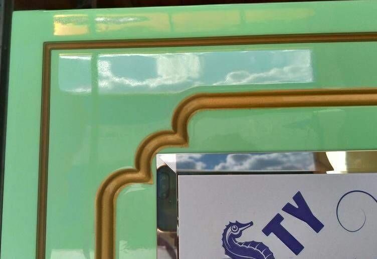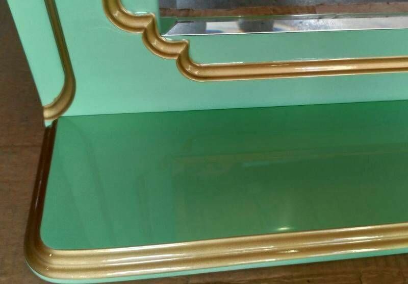 Зеркало Misty Praga 90 с подсветкой с полочкой салатовый/патина Praga 90 Л-Пра02090-073