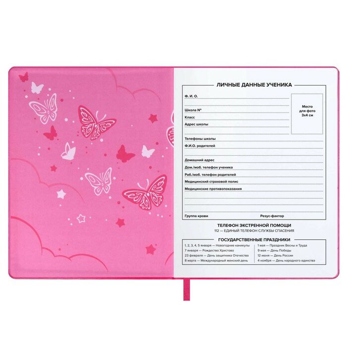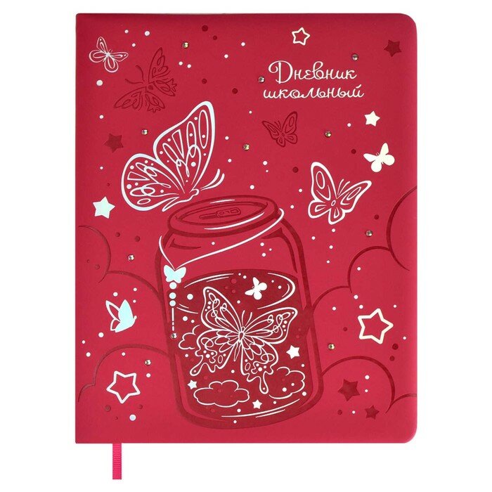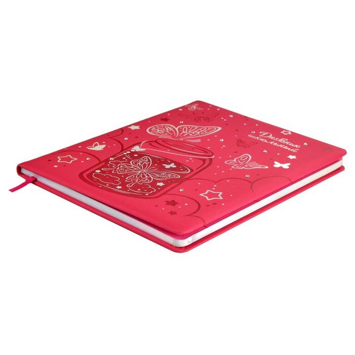 Дневник школьный, формат А5+, 48 л., твёрдый переплёт с поролоном. Обложка: искусственная кожа "Софт-тач", блинтовое тиснение, стразы, тиснение фольгой, углы обложки закруглённые, углы блока закруглённые, отделка среза: фольгирование, одно ляссе, красочность форзаца: печать в одну краску, красочность блока: печать в одну краску. Блок: бумага - белый офсет, 80 г/м?, универсальная шпаргалка. Индивидуальная упаковка: ПЭТ-пакет.