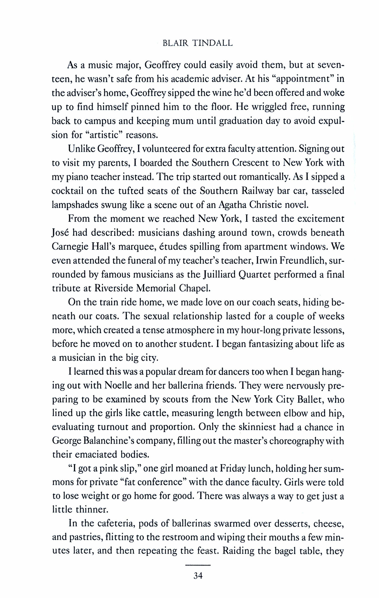 From her debut recital at Carnegie Hall to performing with the orchestras of Les Miserables and Miss Saigon, oboist Blair Tindall has been playing classical music professionally for over twenty-five years. She’s also lived the secret life of musicians who survive hand to mouth, trading sex and drugs for low-paying gigs and the promise of winning a rare symphony position or a lucrative solo recording contract. In Mozart in the Jungle, Tindall describes her graduation from the North Carolina School of the Arts to the backbiting New York classical music scene, a world where Tindall and her fellow classical musicians often play drunk, high, or hopelessly hung-over, live in decrepit apartments, and perform in hazardous conditions. (In the cramped confines of a Broadway pit, the decibel level of one instrument is equal to the sound of a chain saw.)