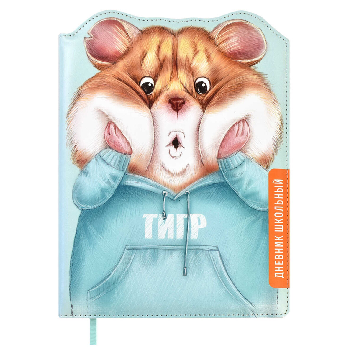 Дневник школьный, Хомяк, формат А5+, 48 л., твёрдый переплёт с поролоном. Обложка: искусственная кожа "Наппа", полноцветная печать, фигурная вырубка по краю, обстрочка по периметру, углы обложки закруглённые, углы блока закруглённые, одно ляссе, красочность форзаца: печать в одну краску, красочность блока: печать в одну краску. Блок: бумага - белый офсет, 80 г/м?, универсальная шпаргалка. Индивидуальная упаковка: ПЭТ-пакет.