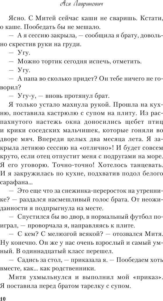 Роман пропитан атмосферой лета: когда палящий зной сменяется долгожданной прохладой после ливня, воздух напоён ароматами цветов и ягод, тебе всего 18 и всё ещё впереди! Походы на речку, первая любовь, настоящие друзья, неожиданные открытия, взлеты, падения и снова взлеты! Идеально для создания "отдыхательного" настроения и отвлечения от забот. Оформление серии всегда вызывает восторг!