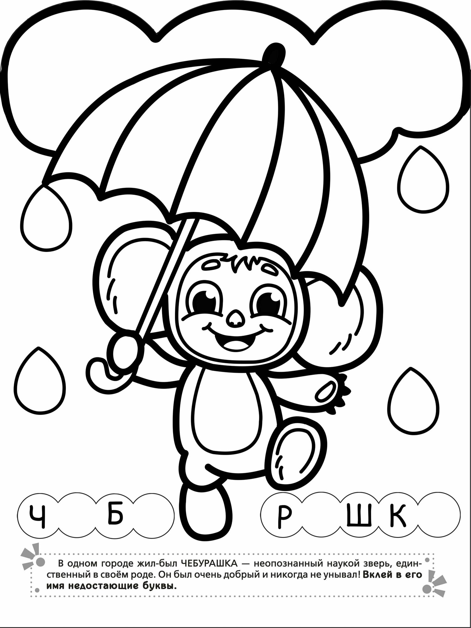 1. Раскрась Чебурашку и его друзей