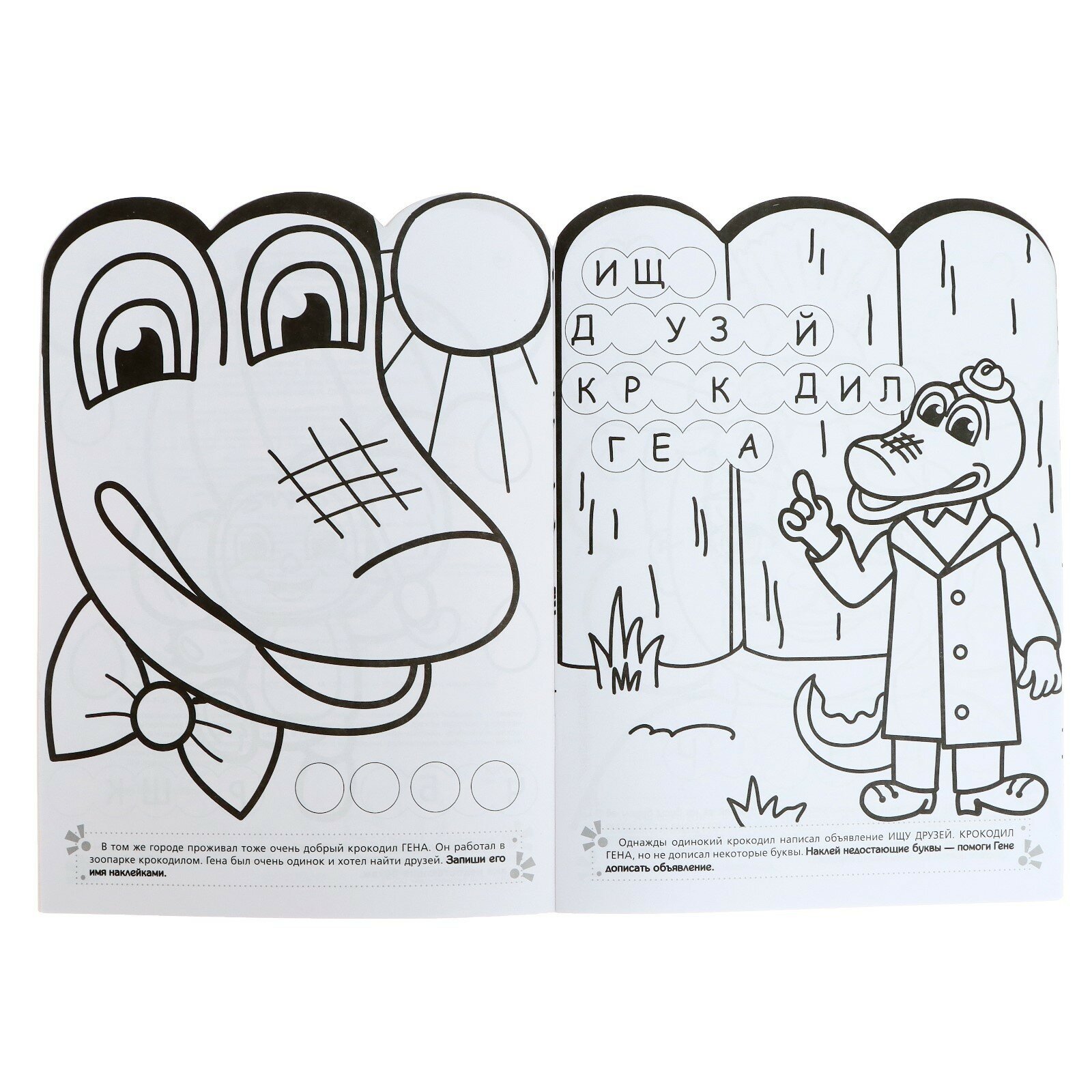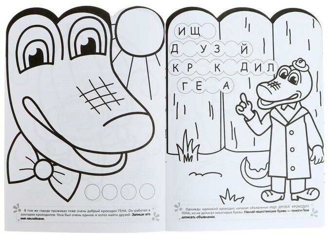 3. Поучаствуй в сказке — дополни картинку наклейками и помоги героям составлять слова из букв.