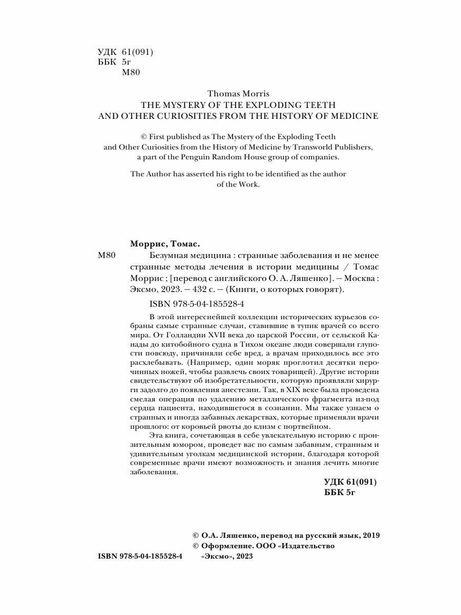 Безумная медицина. Странные заболевания и не менее странные методы лечения в истории медицины (Томас Моррис); Эксмо, БОМБОРА, 2023