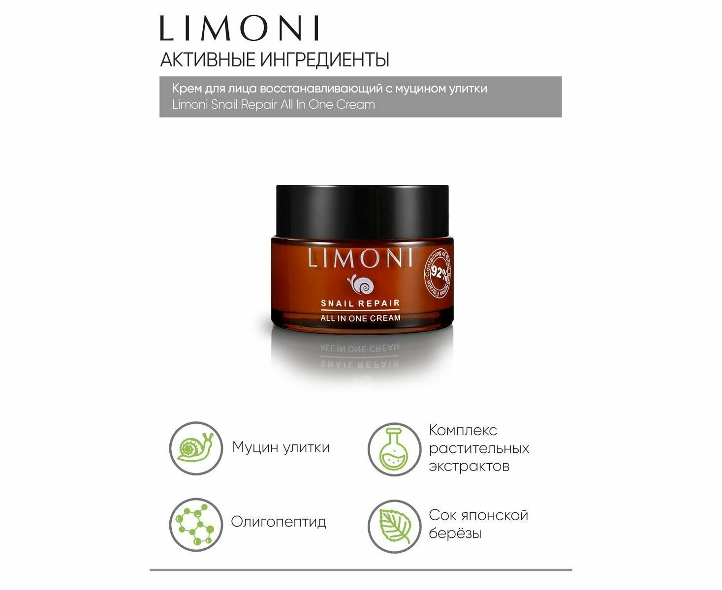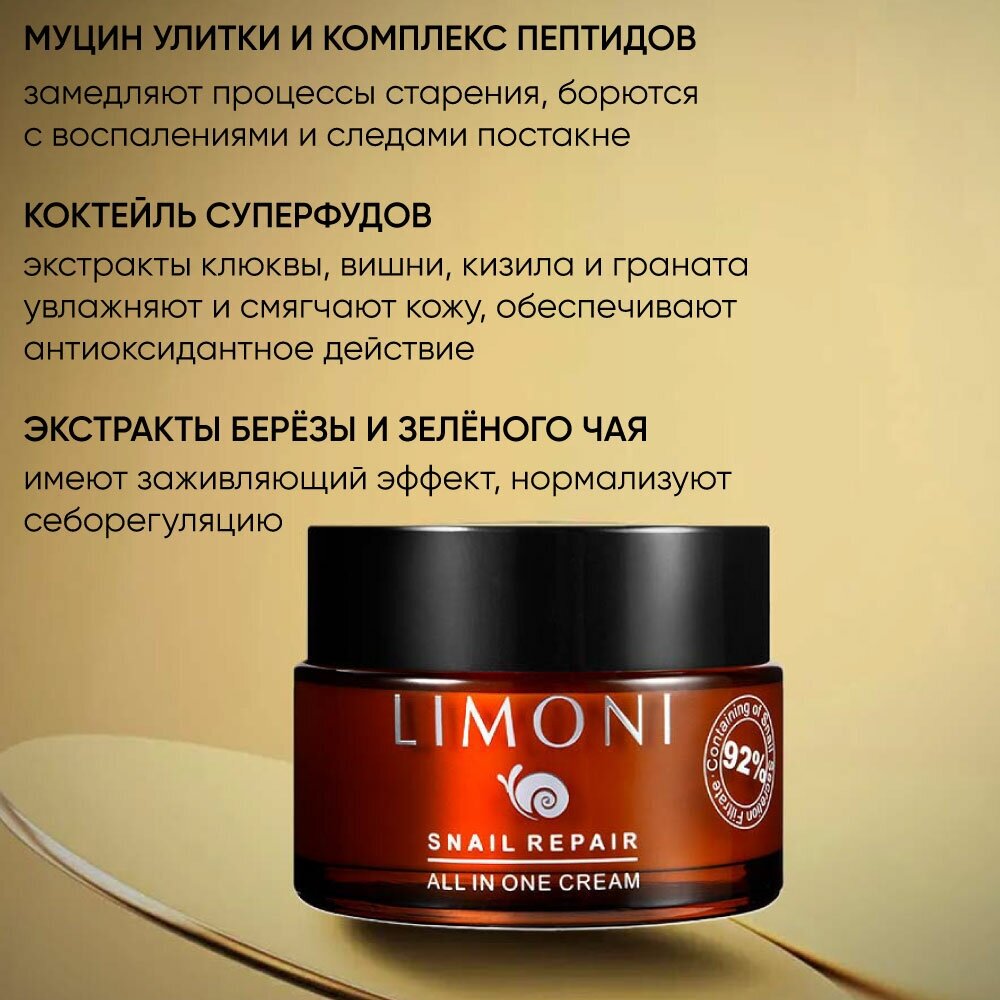 LIMONI Крем восстанавливливающий для лица с экстрактом секреции улитки / Snail Repair All In One Cream 50 мл (846290)