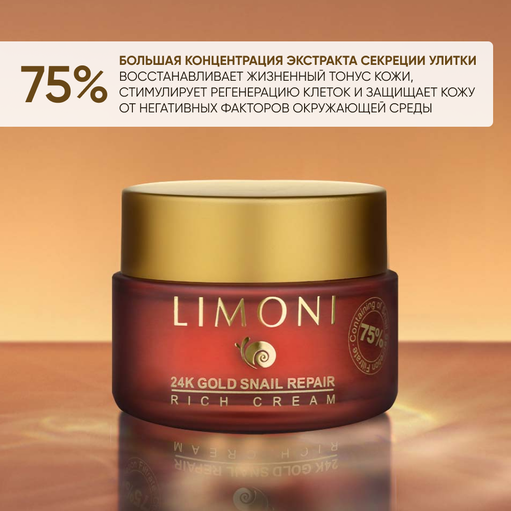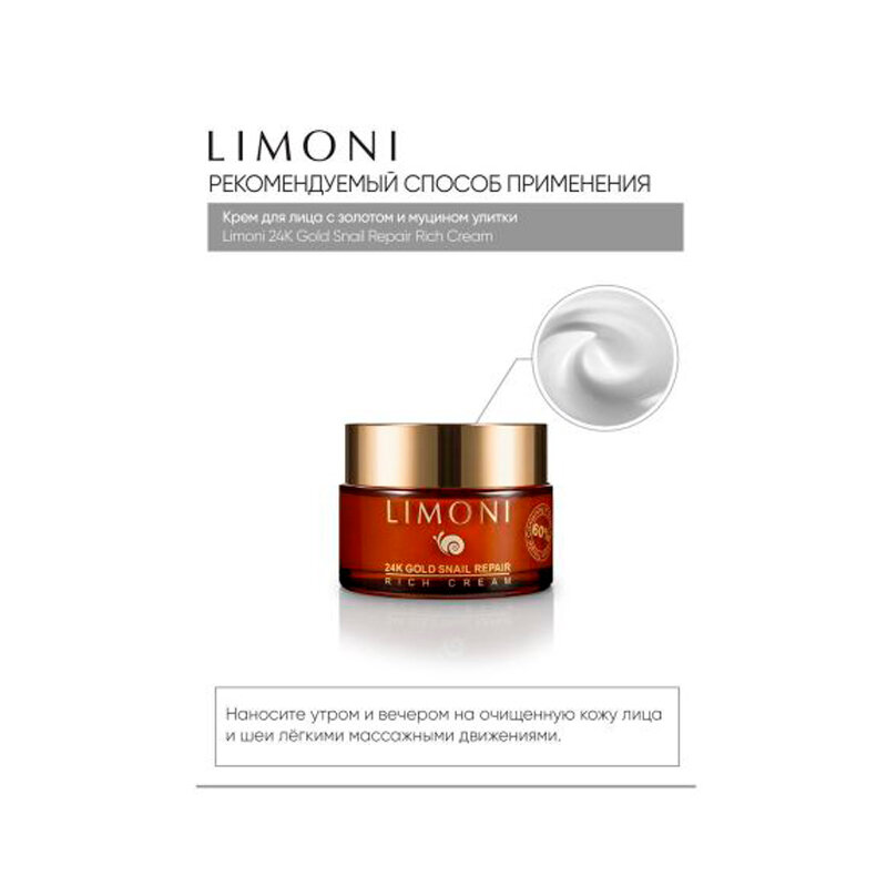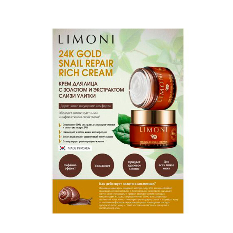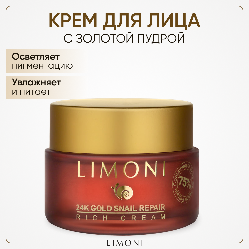 LIMONI Крем для лица с золотом и экстрактом слизи улитки / Snail Repair 24K Gold Rich Cream 50 мл (846289)