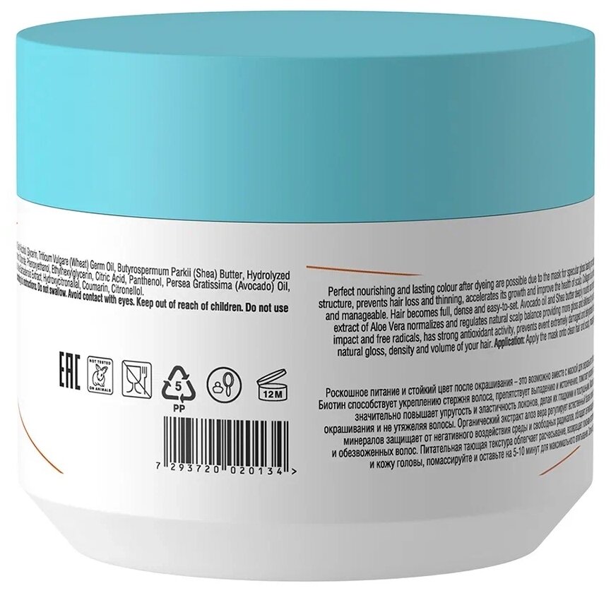 Роскошное питание и стойкий цвет после окрашивания – это возможно вместе с маской для зеркального блеска на основе коллагена, биотина и эффективного комплекса минералов Мертвого моря. Биотин способствует укреплению стержня волоса, препятствует выпадению и истончению, помогает ускорить рост и улучшить состояние кожи головы. Коллаген – незаменимый компонент для волос – значительно повышает упругость и эластичность локонов, делая их гладкими и послушными. Масла авокадо и ши глубоко питают и восстанавливают стойкие повреждения, сохраняя пигмент окрашивания и не утяжеляя волосы. Органический экстракт алоэ вера регулирует естественный баланс кожи головы, обеспечивая прядям дополнительный блеск и шелковистость. Комплекс морских минералов защищает от негативного воздействия окружающей среды и свободных радикалов, обладает антиоксидантным эффектом и помогает предотвратить ломкость и сухость даже очень поврежденных и обезвоженных волос. Питательная тающая текстура облегчает расчесывание, возвращает локонам естественное сияние, плотность и объем.