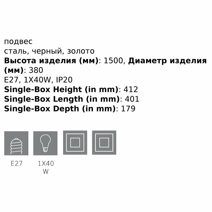 | Максимальная мощность ламп, W | 40 |