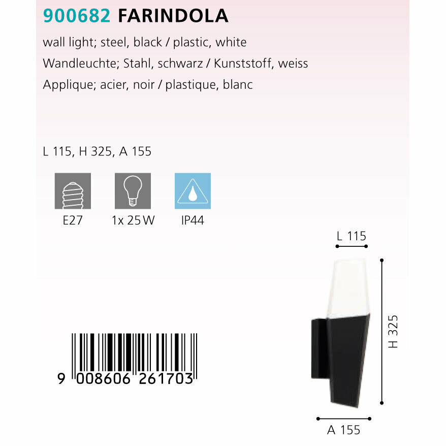 Цвет арматуры уличного настенного светильника Eglo FARINDOLA - черный.