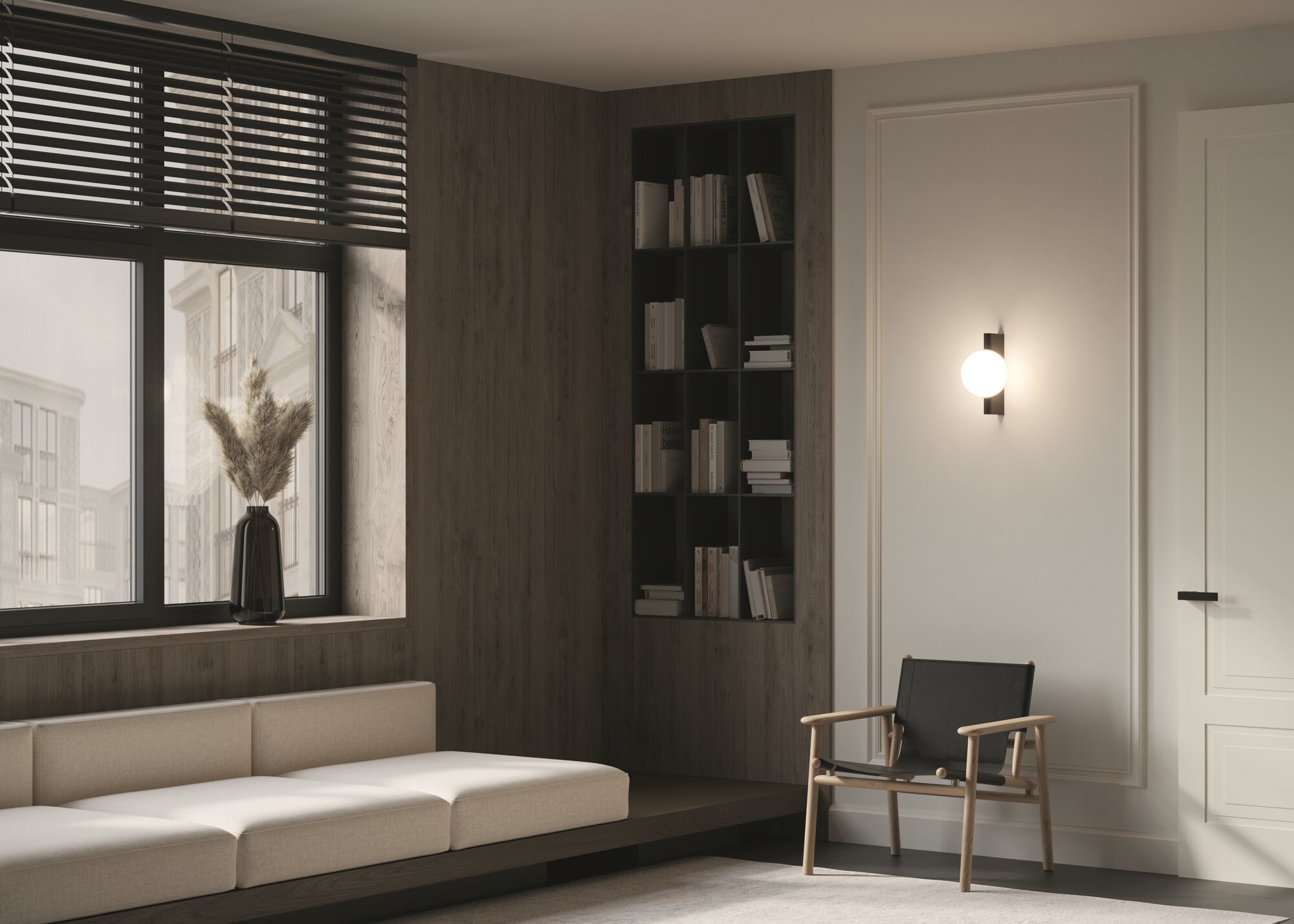 В основе дизайна светильников этой серии лежит трехмерная ритмическая композиция из геометрических тел. На тонких пересекающихся между собой стержнях установлены цилиндрические плафоны, каждый из которых вращается на 340° в горизонтальной и 90° в вертикальной плоскостях. Гибкий функционал расширяет возможности для формирования различных сценариев и интуитивного светового зонирования помещения. За счет безрамочной конструкции плафона и интегрированного LED-модуля обеспечивается яркое равномерное свечение по всей поверхности рассеивателя. На корпусе бра и настольной лампе установлены выключатели с функцией плавного диммера. Серия объединяет подвесные, настенные, настольные и напольные модели. Вместе они составляют готовый ансамбль для комплексной подсветки современного интерьера.