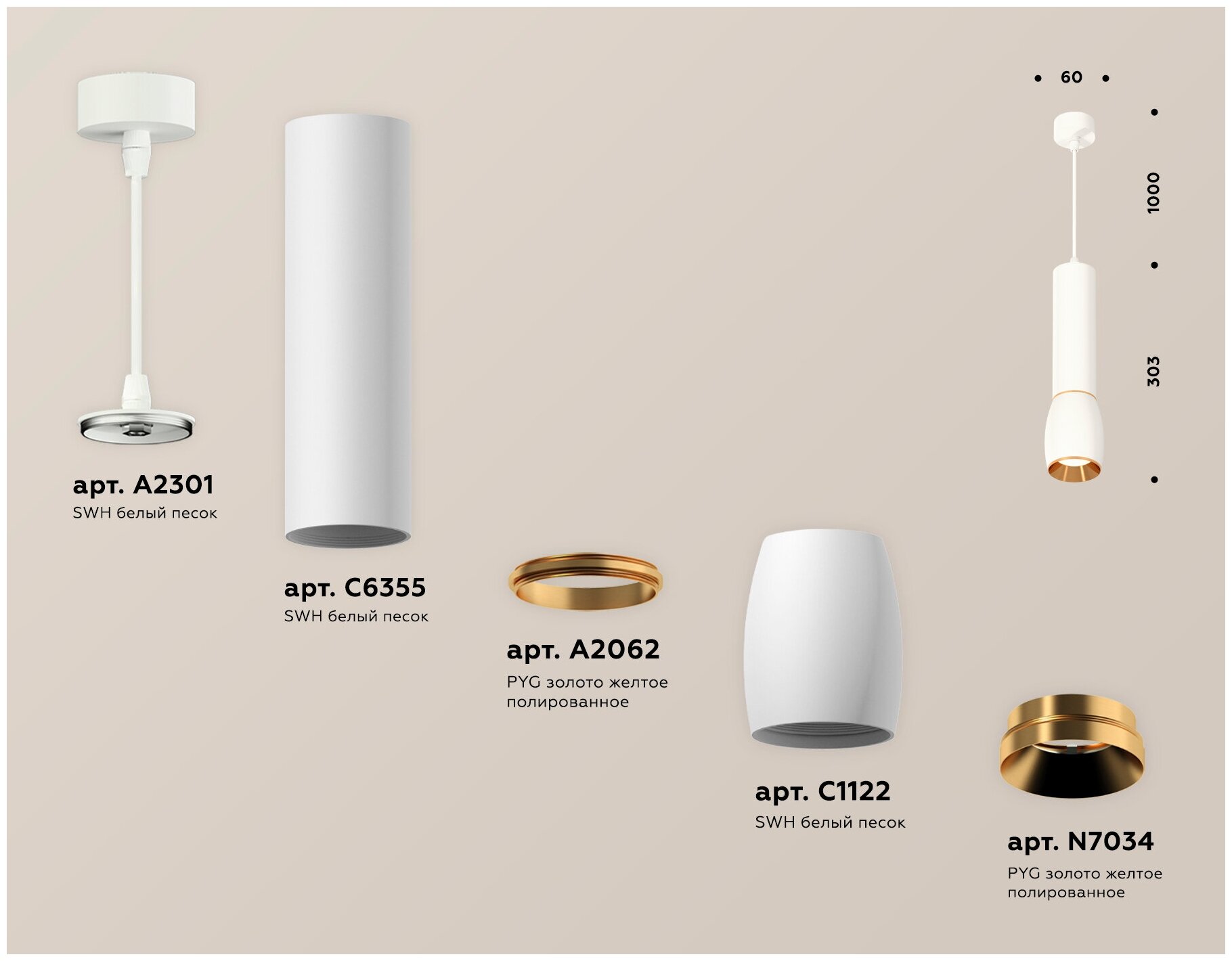 Комплект подвесного светильника Ambrella light Techno Spot SWH/PYG белый песок/золото желтое полированное (A2301C6355A2062C1122N7034) XP1122030