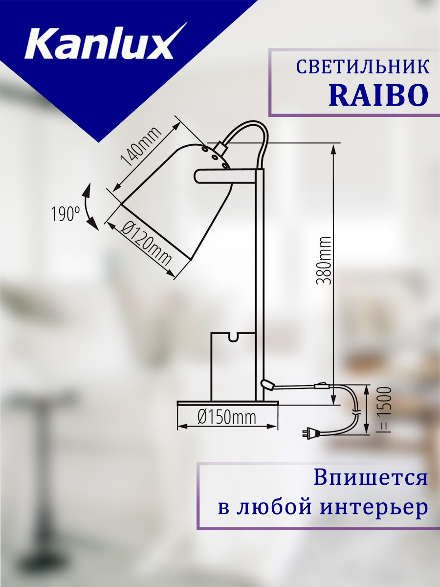 Настольная лампа Kanlux RAIBO E27 B / 36280