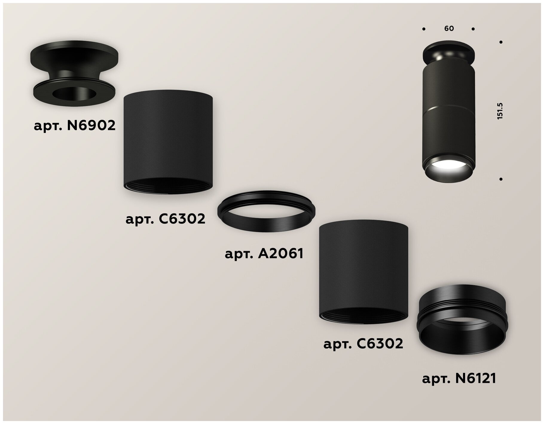 Комплект потолочного светильника Ambrella light Techno Spot XC (N6902 C6302 A2061 N6121) XS6302201