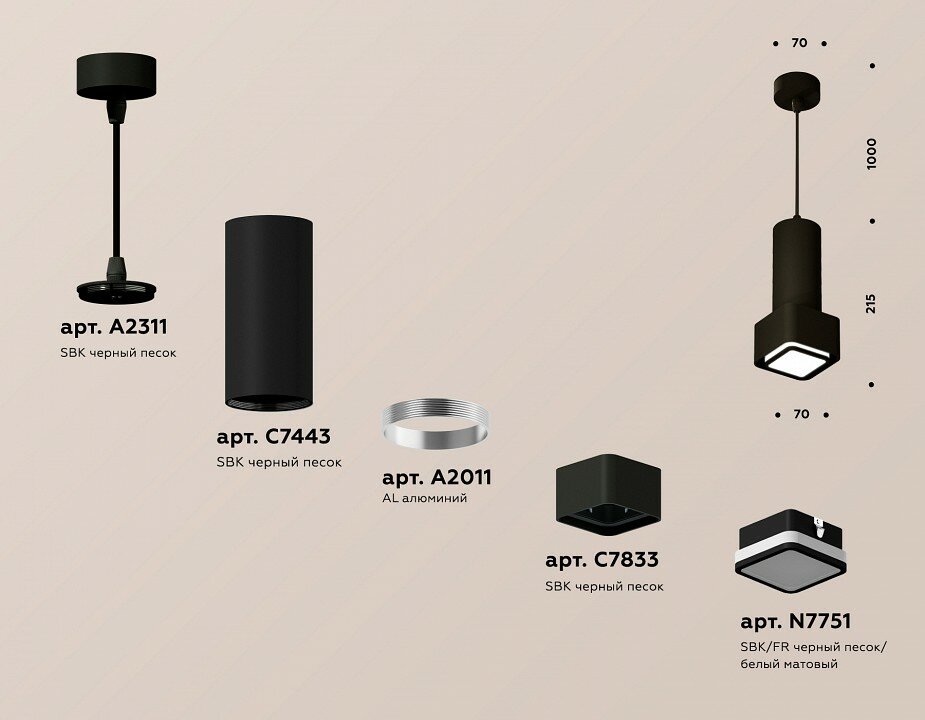 Комплект подвесного светильника Ambrella light Techno Spot SBK/FR черный песок/белый матовый (A2311 C7443 A2011 C7833 N7751) XP7833002