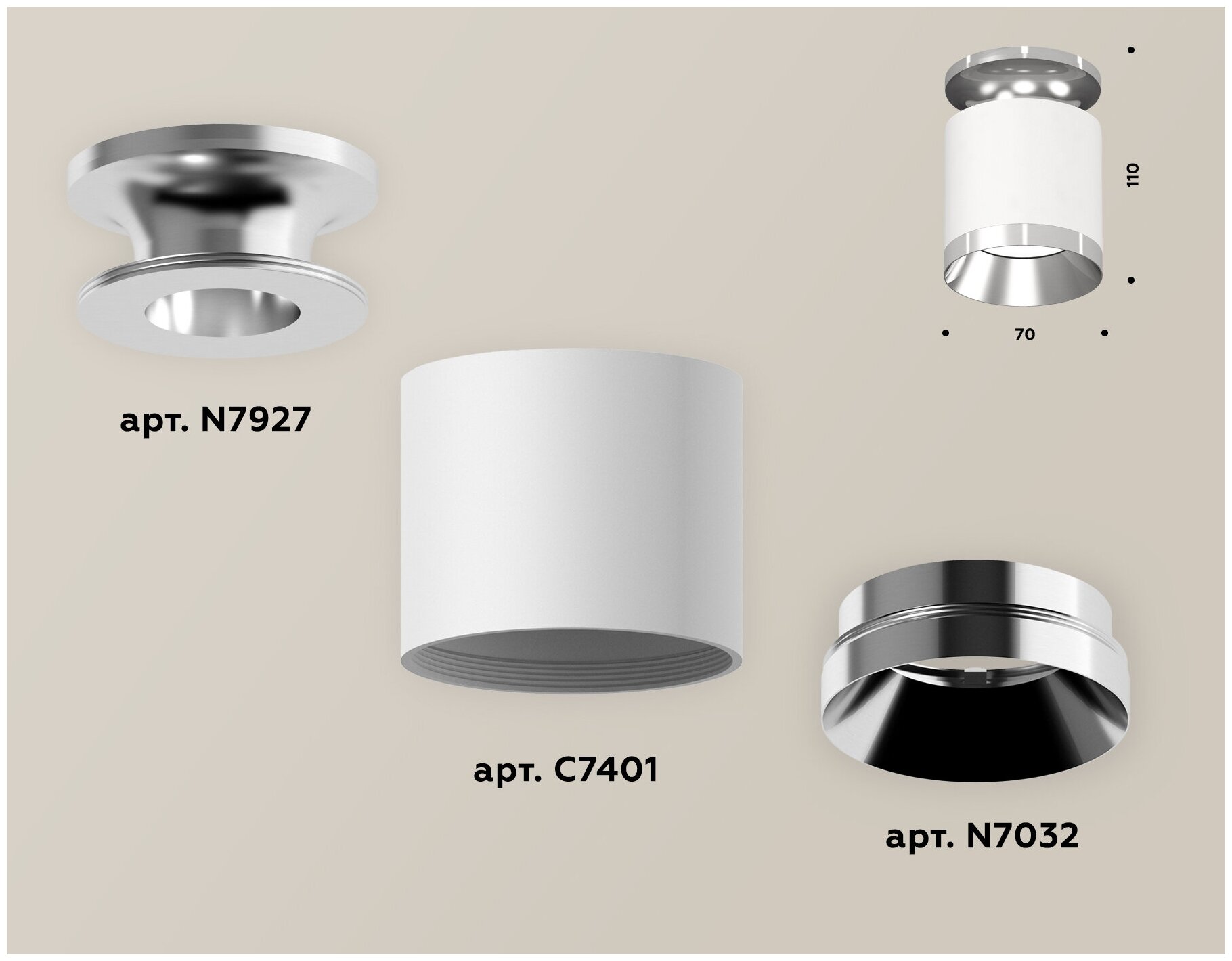 Комплект накладного светильника Ambrella light Techno Spot SWH/PSL белый песок/серебро полированное (N7927 C7401 N7032) XS7401101
